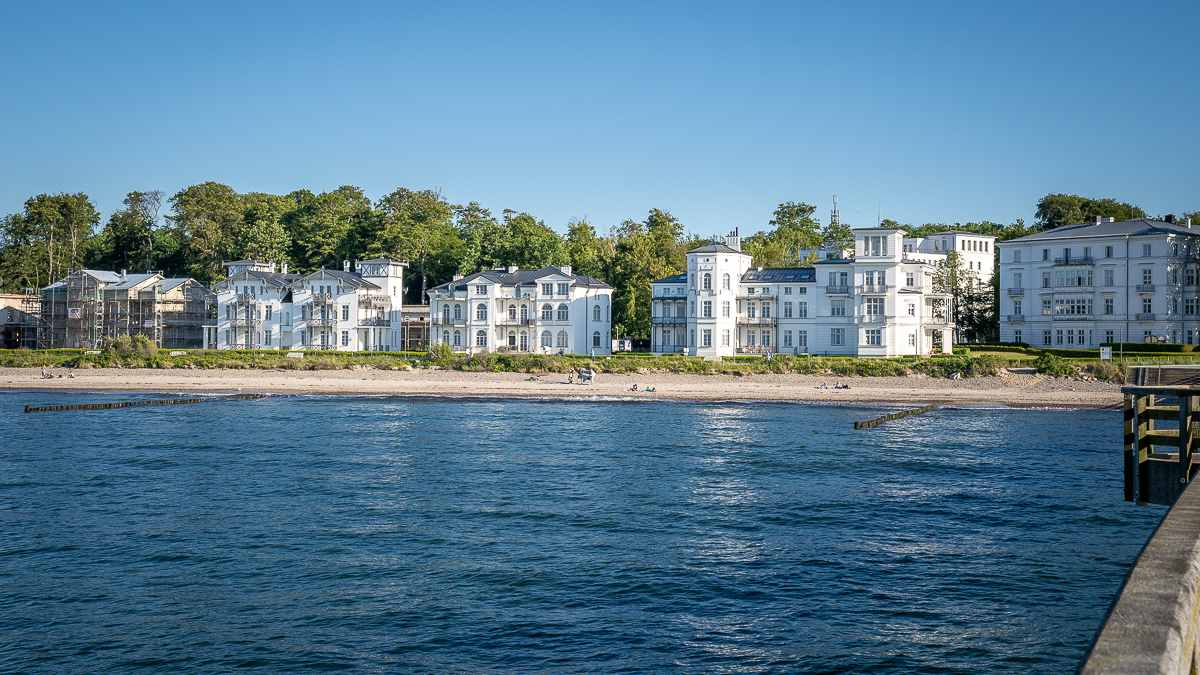 „Die weiße Stadt am Meer“ war lange Jahre ziemlich heruntergekommen. Das erste Seebad in Deutschland wurde restauriert. Doch als wir hier sind, wirkt es leblos. Keine Läden – sogar der Eisladen hat geschlossen - überall nur Zugang für Hotelgäste und kaum Menschen. Den Strand habe ich mir viel schöner ausgemalt.