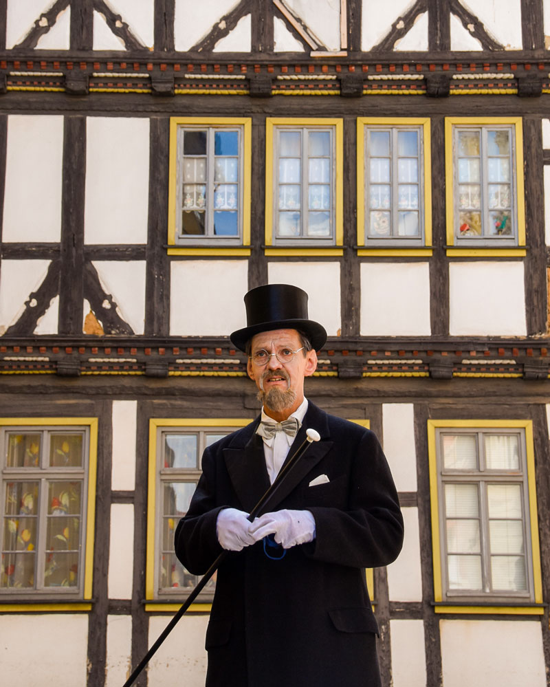 Er kleidet sich nicht nur stadthistorisch in Schale, er mimte uns sogar den hiesigen Nougat-Revolutionär Willi Viebahn. Zudem glänzt er mit seinem Wissen und Anekdoten, die Ihresgleichen suchen. Absoluter Top-Tipp für Schmalkalden.