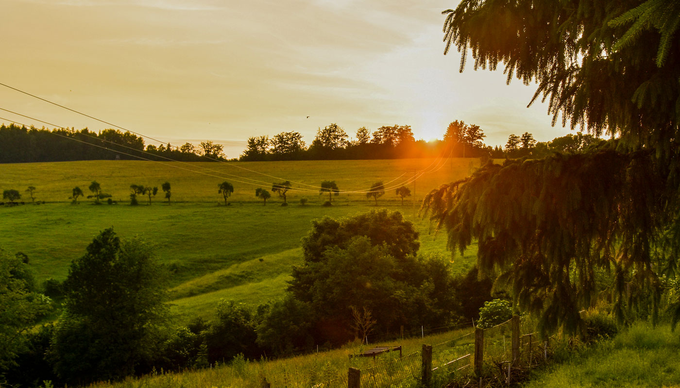 Nach dem Baden im See lockt Kurti’s Baude mit einer Bratwurst und einem Radler, bevor es über Berge und Wiesen bergab zurück nach Floh geht.