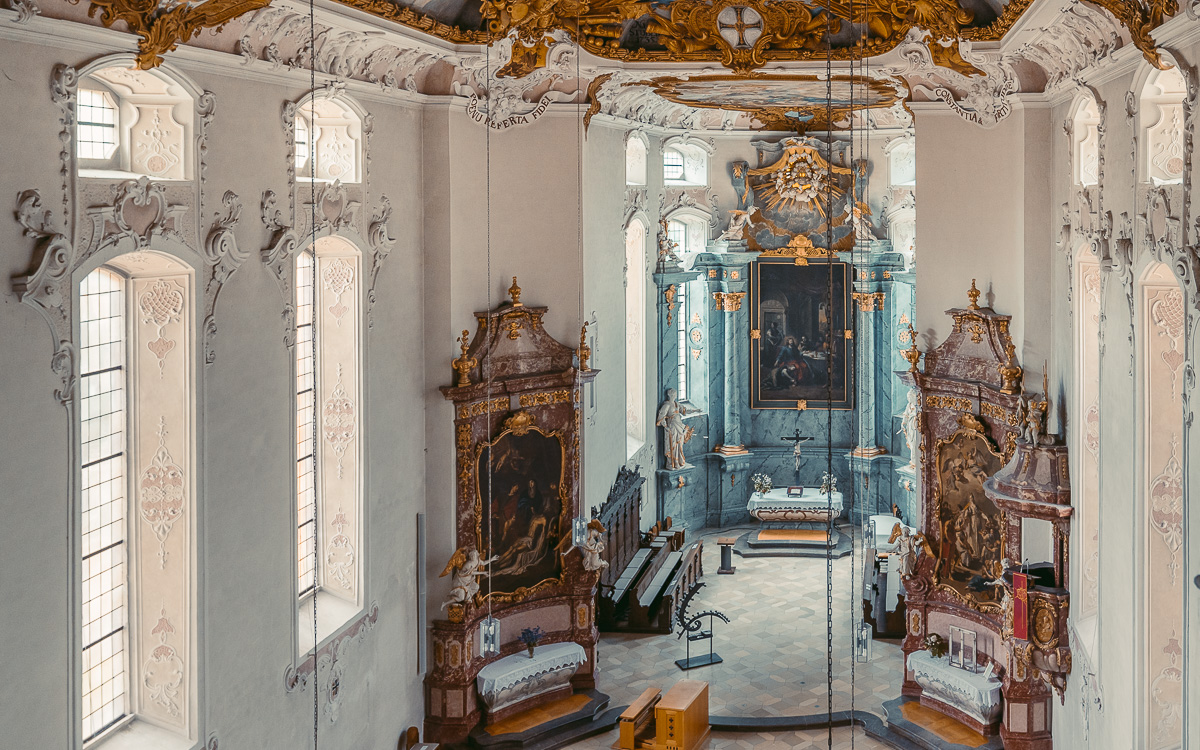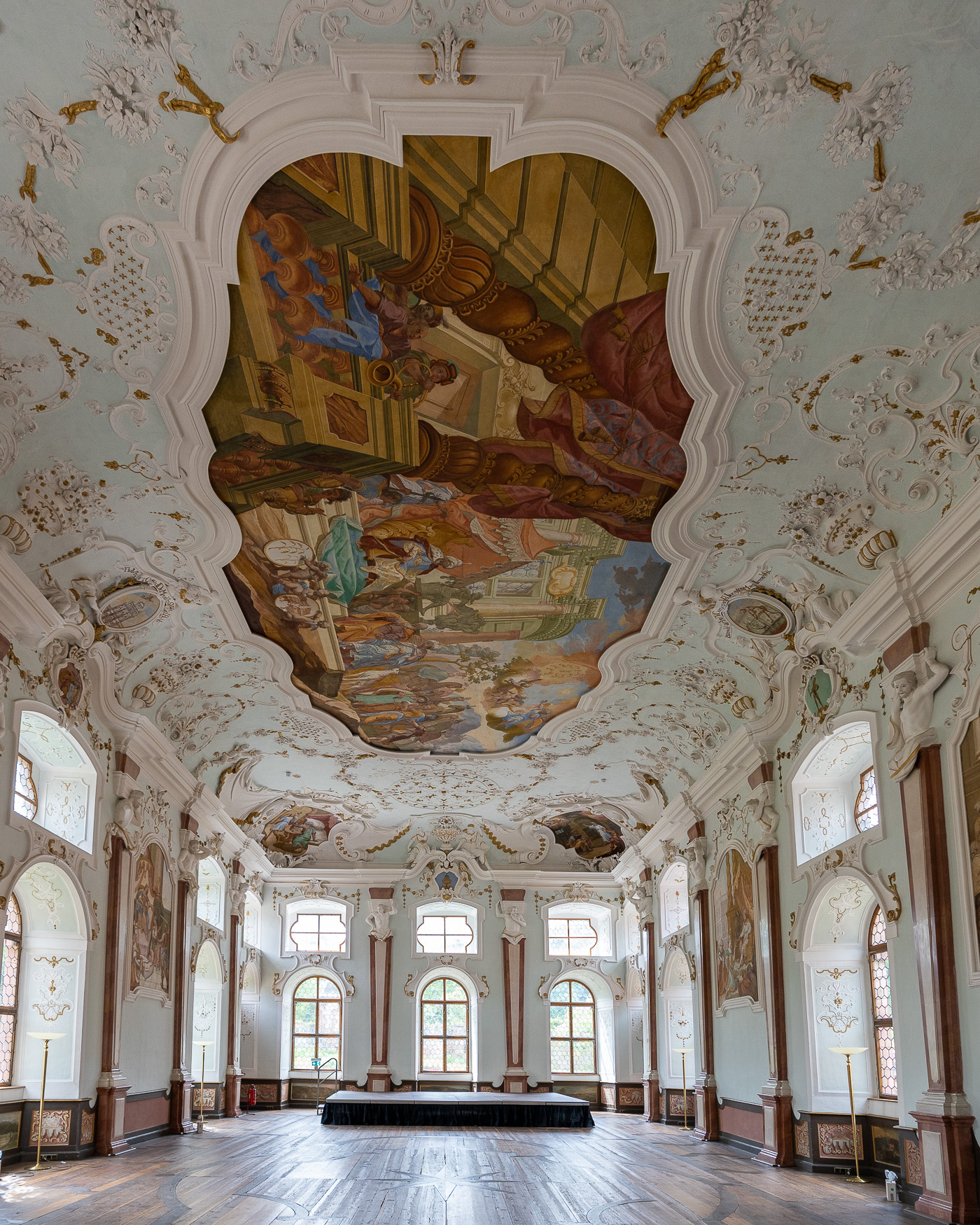 Falls du Glück hast, ist die Schlosskirche auf dem Areal geöffnet. Falls nicht - wie an meinem Besuch – kannst du aus dem Museum in die Kirche hineinblicken. Der Anblick hat mich fast umgehauen. Mir klappte wirklich die Kinnlade nach unten. Die wunderschön bemalte Decke der Schlosskirche hat mich so sehr an die der Sixtinischen Kapelle in Rom erinnert - wow! Als dann im Inneren plötzlich der Orgelspieler begann zu proben, bekam ich eine Gänsehaut.