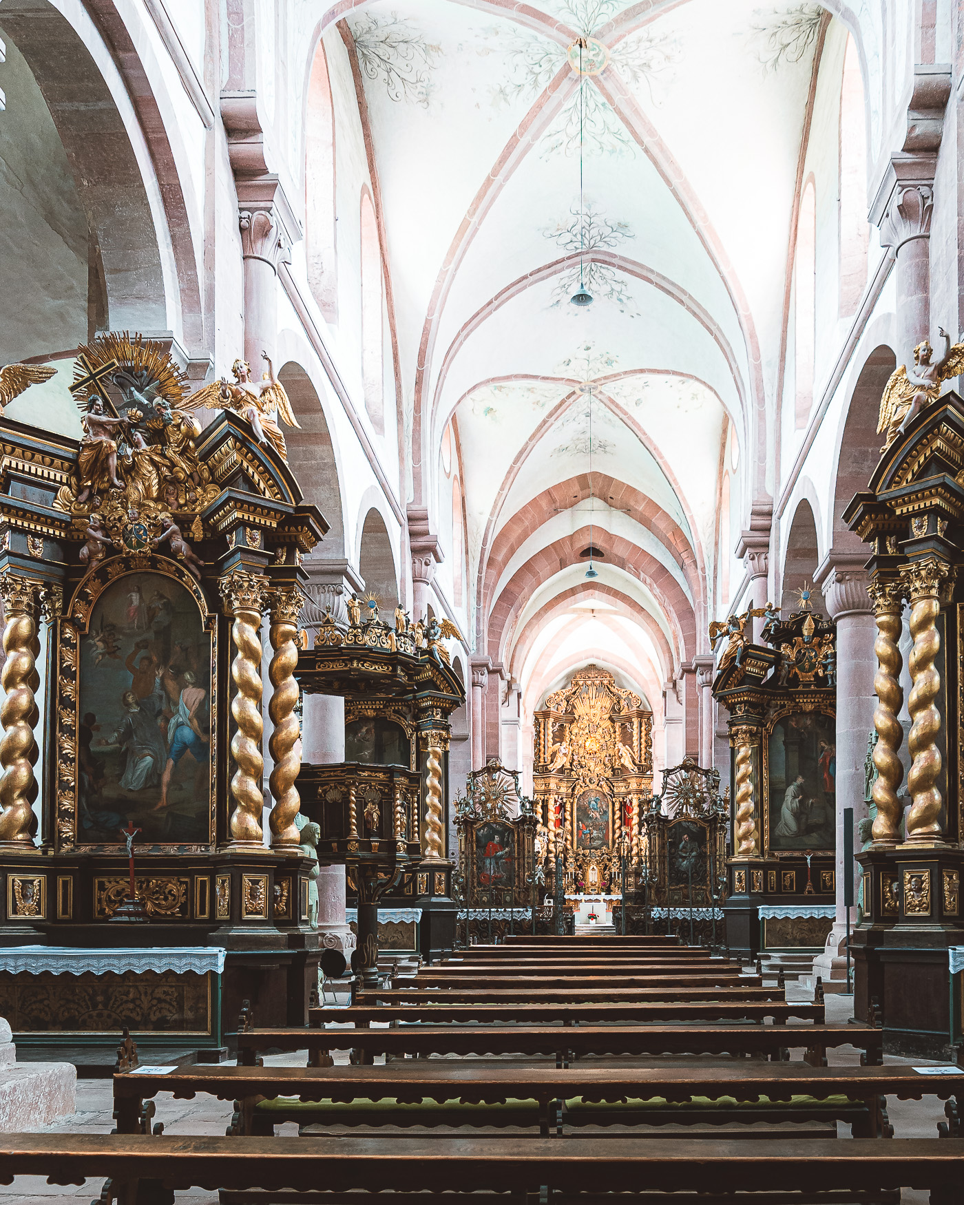 Ehe du weiter nach Wertheim fährst, solltest du einen weiteren Halt am Kloster Bronnbach machen. Das Kloster mit Klosterkirche aus dem Jahr 1161 mit seinem romanisch-gotischen Kreuzgang und dem beispiellosen Josephsaaal sind die Pause definitiv wert. Ich fand das Kloster super schön und kann dir diesen Stopp absolut empfehlen!