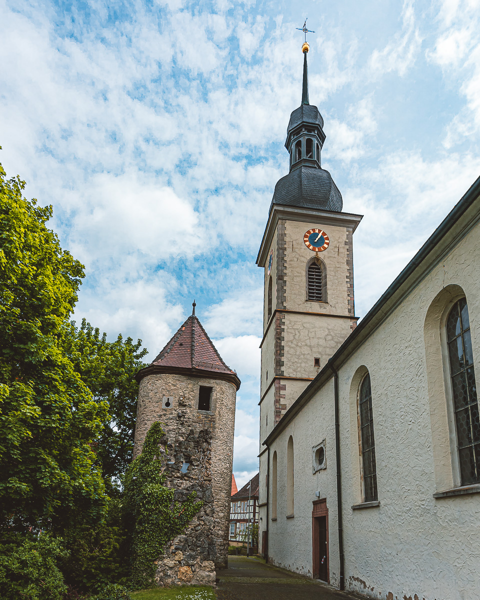 Auf dem Weg nach Weikersheim solltest du die Route über Laudenbach wählen. Denn hier findest du Schloss Laudenbach, das ebenfalls wie die Wehrtürme aus einem Fachwerkhaus auf einem Steinsockel erbaut wurde. Leider war das Schloss aufgrund Corona an meinem Besuch noch geschlossen.