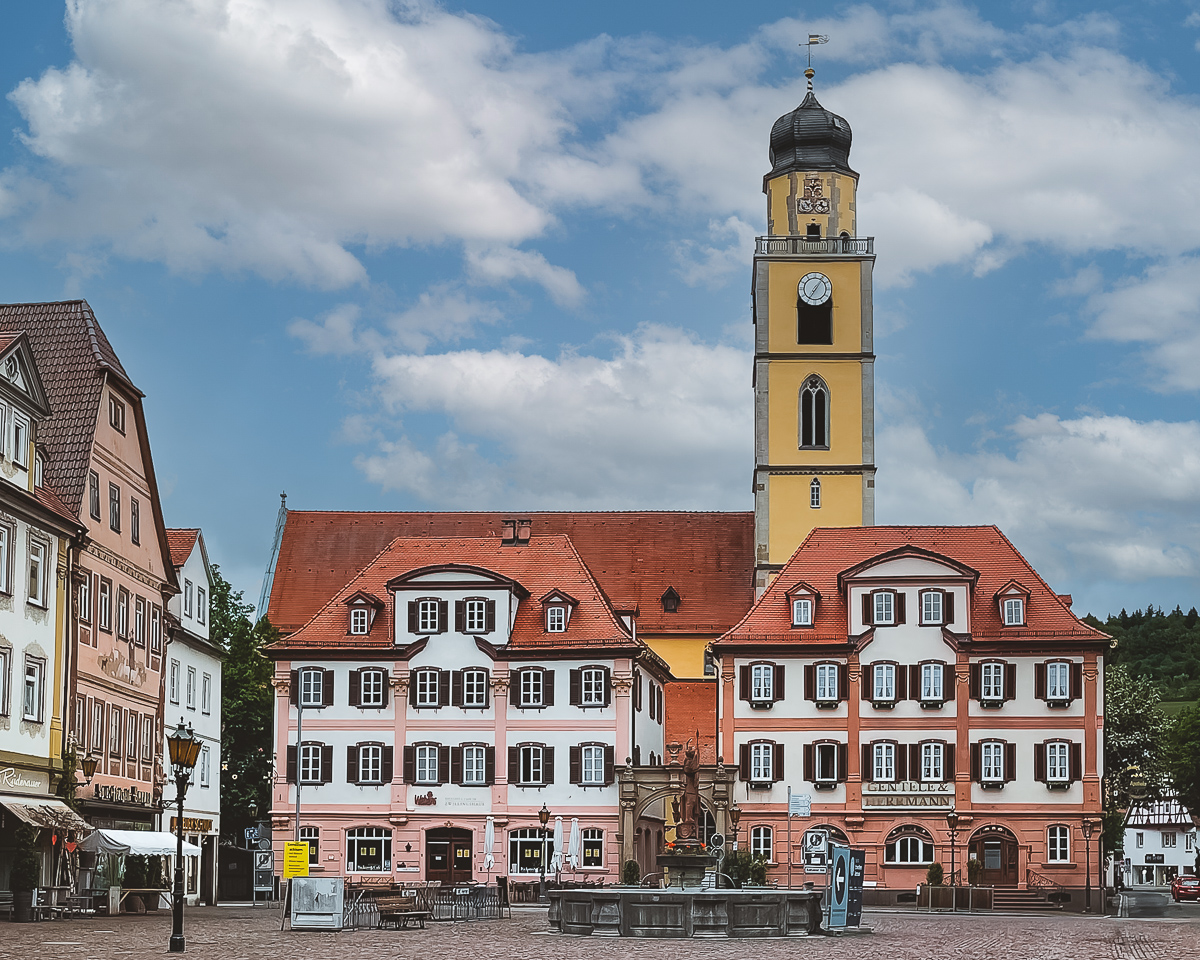 Am Marktplatz findest du besonders historische Bauwerke wie die Alte Post (1602), Stern-Apotheke (1670), Franck-Haus, Rincker-Haus (1678), Mackert-Haus (1744) sowie den Rehe-Hof (1702). Lausche am neugotischen Rathaus dem Glockenspiel.