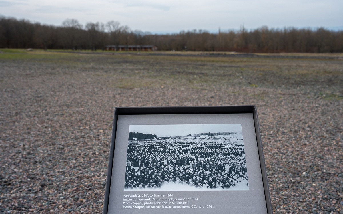 Sobald du das ehemalige Lager betrittst, befindest du dich auf dem Appellplatz, auf dem sich täglich und abends die Häftlinge zum Appell aufstellen mussten. Drumherum befanden sich die Baracken, in welchen die Insassen regelrecht eingepfercht wurden. Gedenksteine aus dem Jahr 1955 erinnern daran. Auf dem weitläufigen Gelände sind Steine eingelassen, die dich darüber informieren, welcher Block oder Baracke hier standen.