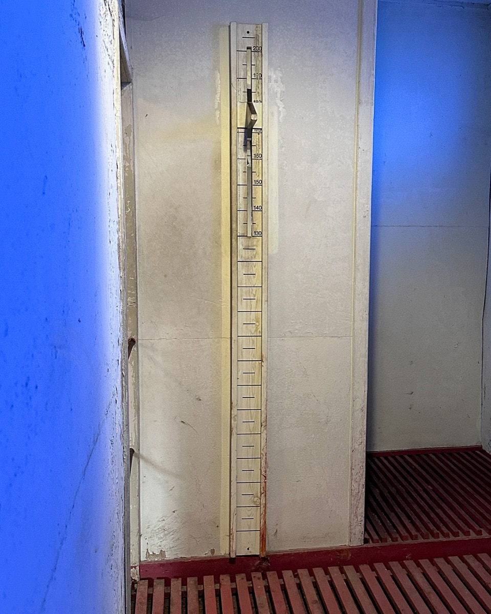 Solch eine Lore, sowie den Nachbau der Genickschussanlage kannst du im Anbau auf der Rückseite des Krematoriums sehen. Sie wurde aus einer Messlatte an der Wand gefertigt, die auf Nackenhöhe einen Schlitz erhielt, um die Opfer von dem Raum nebenan hinterhältig per Genickschuss zu erschießen.