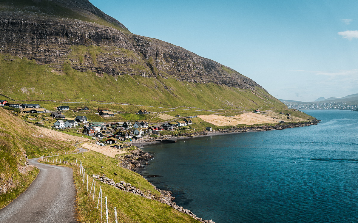 Vor unserer Rückfahrt nach Klaksvik passierten wir noch Funningur. Besonders die sich windenden Straßen haben uns hier beeindruckt. Funningur ist eines der ältesten Dörfer der Färöer und hat wie fast alle kleineren Dörfer diese süßen, farbenfrohen Häuser. Bekannt ist hier auch die geteerte Holzkirche aus dem Jahr 1847. Wir haben es nicht so mit Kirchen, daher haben wir kein Foto gemacht. Die Wanderung auf den oben erwähnten Slættaratindur kannst du auch von hier starten.