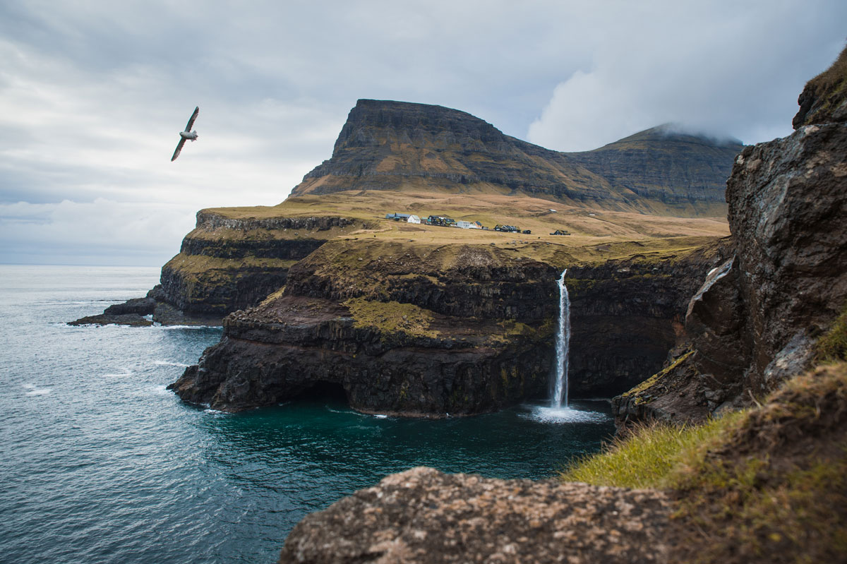 - Tag 1: Ankunft – Insel Vágar (Bøur und Gásadalur. Wanderung Sørvágsvatn See mit Trælanípa/Bøsdalafossur)