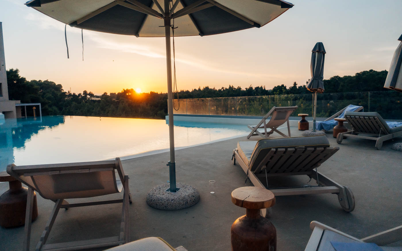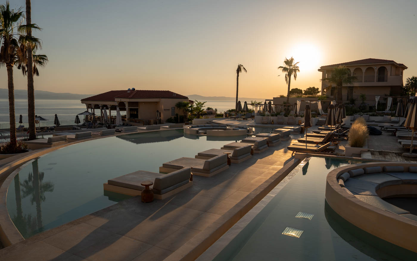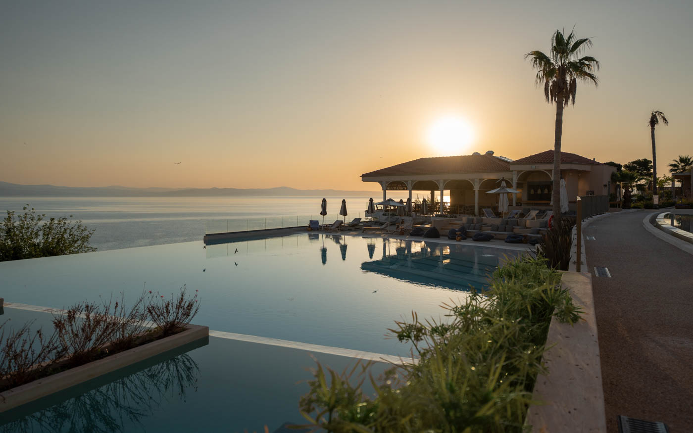 Das Highlight ist der Infinity-Pool. Lehnt man sich an die Kante des Beckens, so kann man einen spektakulären Blick auf die gebirgige Landschaft, den Wald, sowie den Strand und das Meer. Der Eingang zum Pool verläuft kontinuierlich (Lagunenpool), das Wasser wird also immer tiefer und man muss nicht erst über einen Leiter hineinklettern.