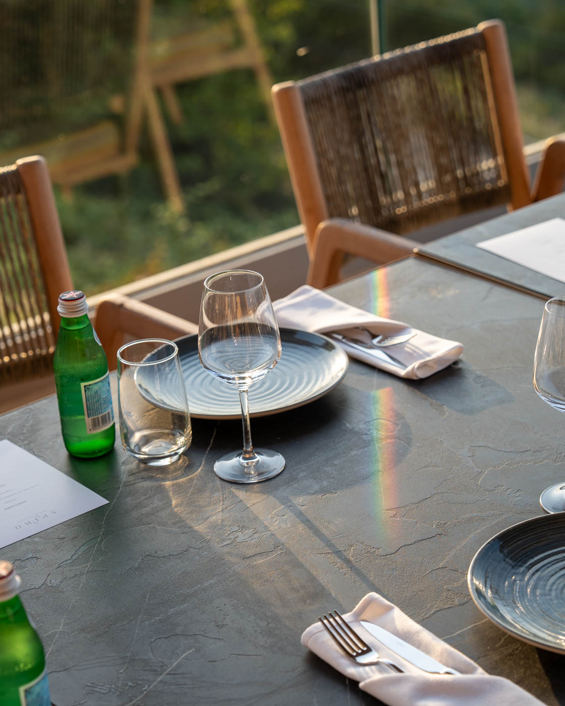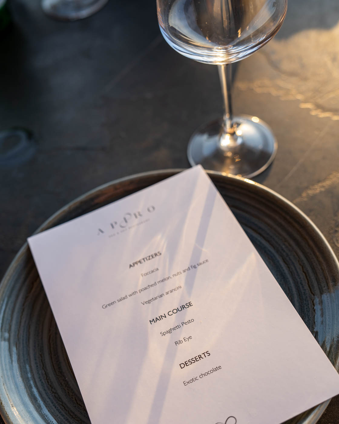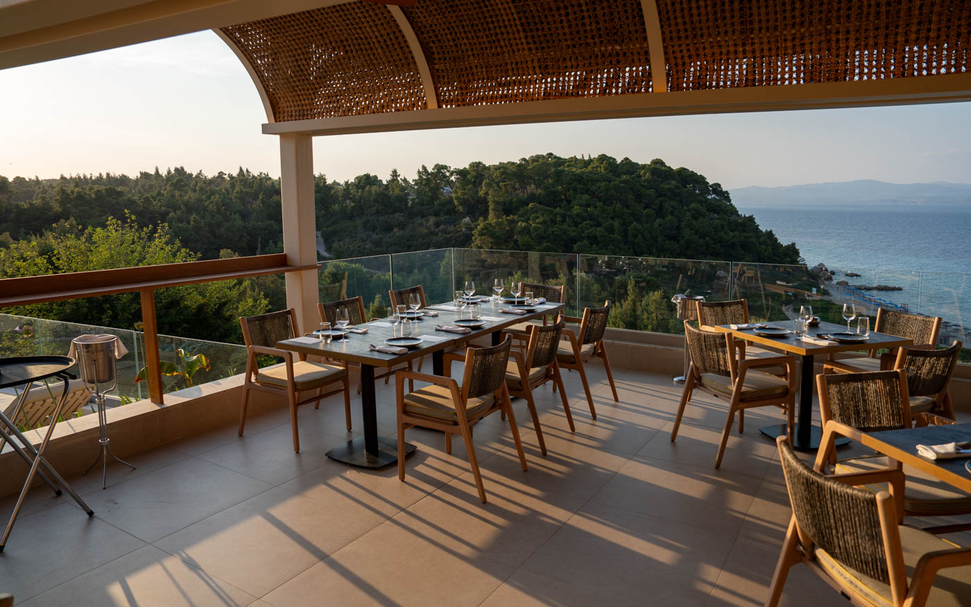 Das Apiro Sea & Sky Restaurant befindet sich direkt neben dem Infinity-Pool und hat die beste Aussicht. Die Küche ist nach eigenen Angaben griechisch-japanisch inspiriert. Es gibt viel Fisch und Fleisch, aber auch vegetarische Optionen. Wer Fine Dining mag, ist hier genau richtig. Gerade zum Sonnenuntergang lässt sich hier der griechische Flair vollends auskosten.