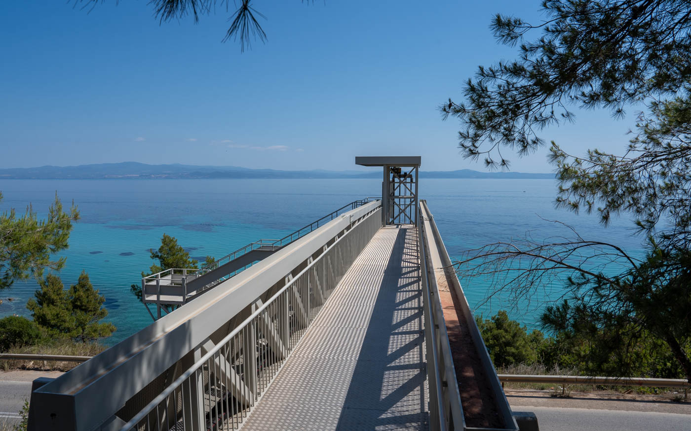 Auf den ersten Blick nicht ersichtlich ist der Privatstrand, der dem Hotel zugehört. Denn Strand und Hotel trennt nicht nur eine Durchfahrtsstraße, sondern auch der Höhenunterschied. Dafür hat das Cora Hotel & Spa aber eine faszinierende Lösung gefunden.