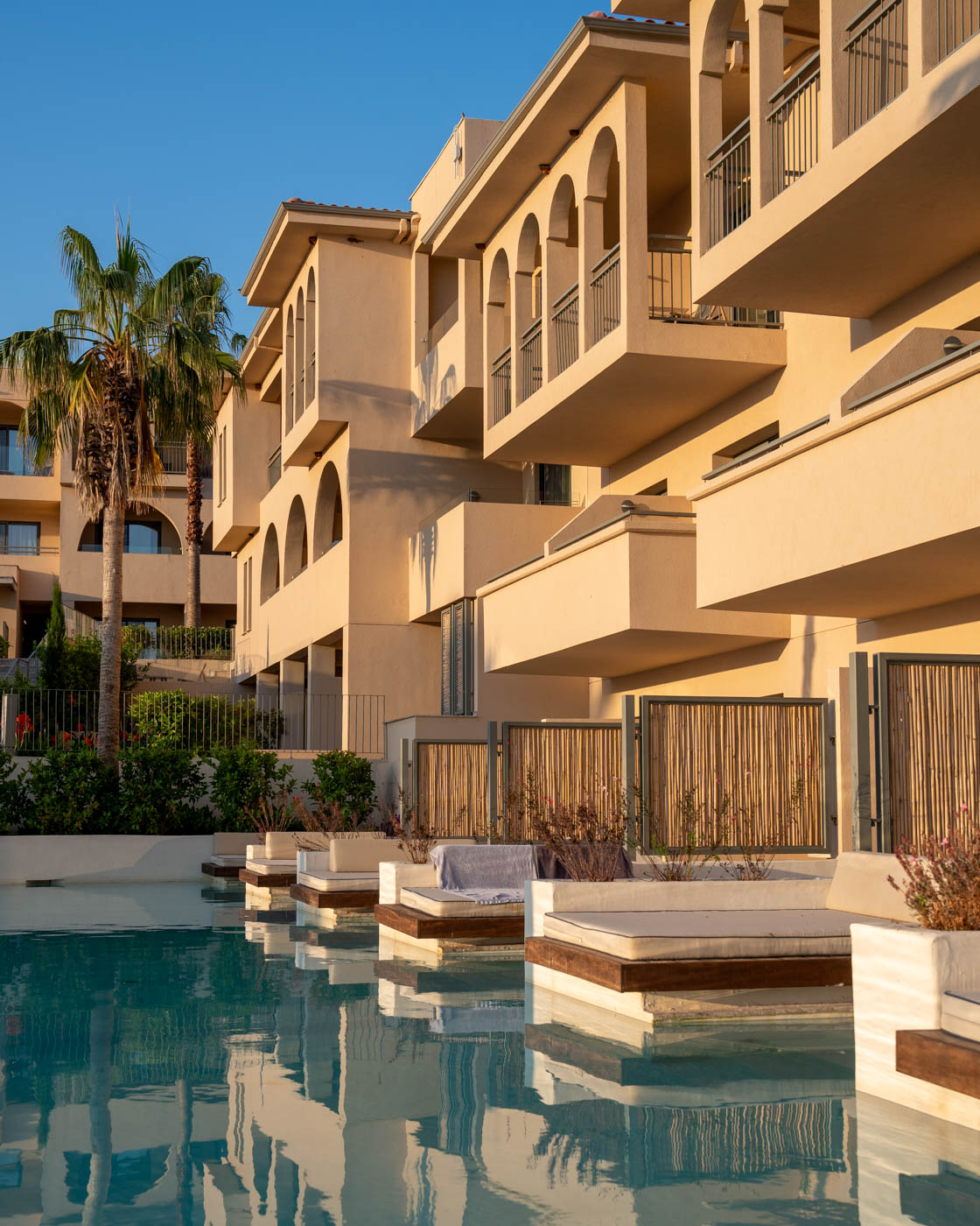 Das Hotel bietet auch günstigere Zimmer ohne Poolzugang, die dann in den höheren Etagen sind und einen Balkon auf das Meer (oder die Landschaft) haben. Wer sich mit den öffentlichen Poolzeiten begnügen kann oder sowieso lieber ans Meer geht, wird sich damit zufriedenstellen.
