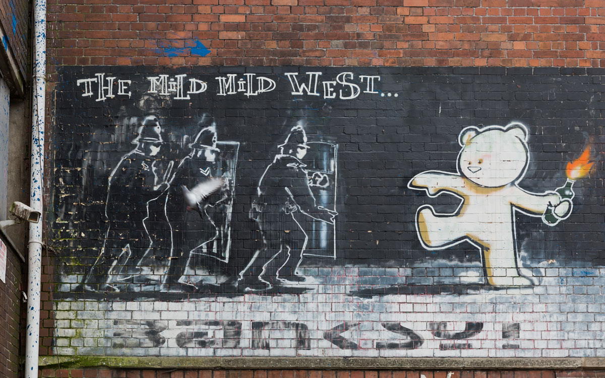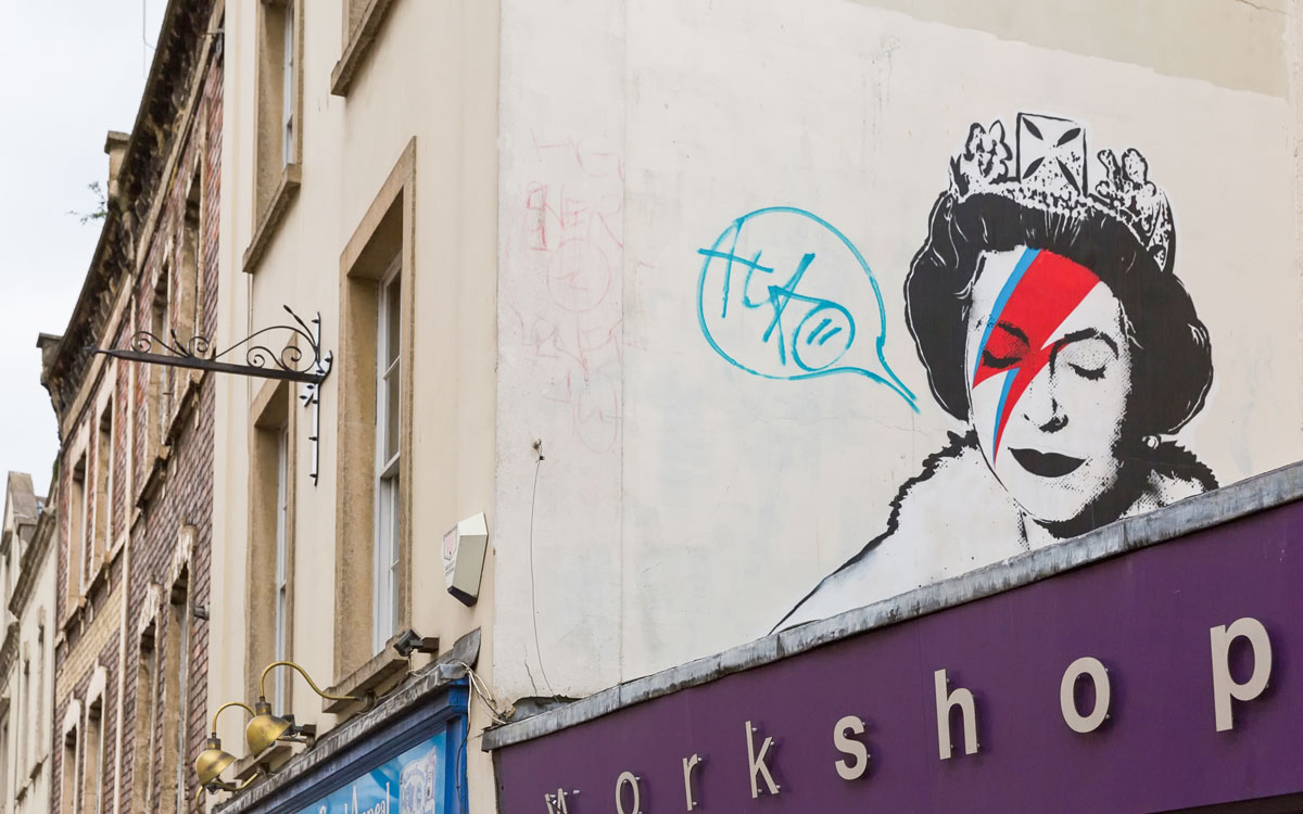 Banksy Street Art in Bristol: Besuche dafür das Viertel Stokes Croft. Banksys Mild Mild West-Kunstwerk befindet sich neben der The Canteen und die beste Aussicht darauf hast du von der Kreuzung an der Jamaica Street. Buche hier (Where the Wall) oder hier eine Street Art Walking Tour für mehr Infos.