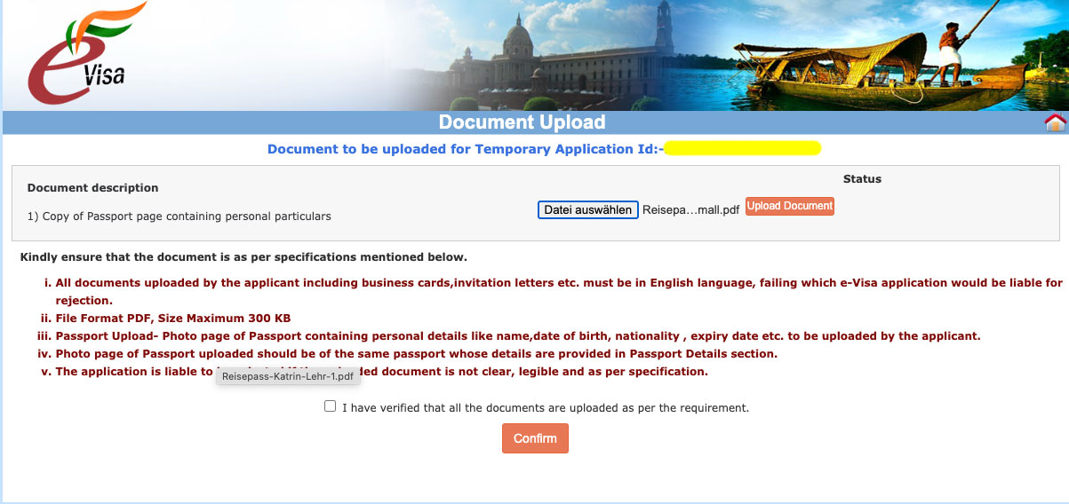 - Kopie des Reisepasses als PDF hochladen