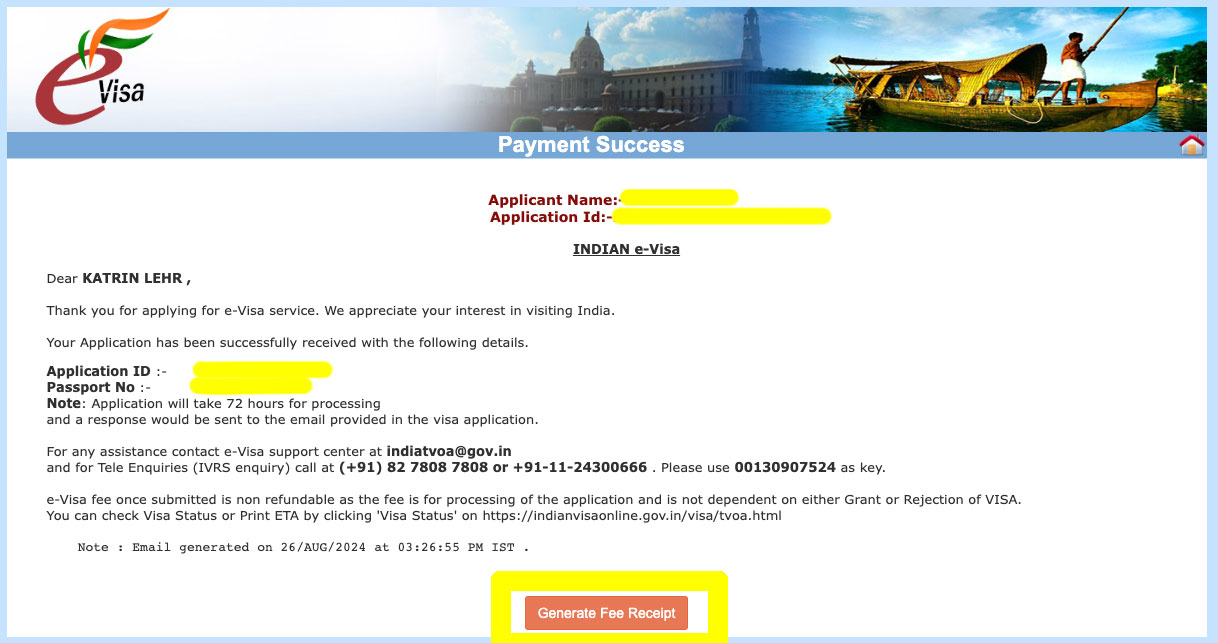 Inhalt: Your application for Indian e-Visa has been processed with following result