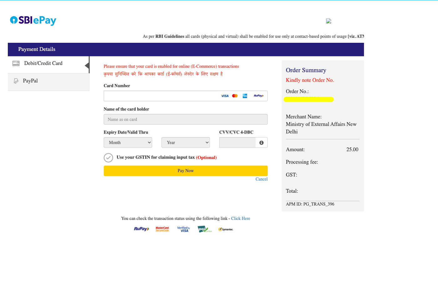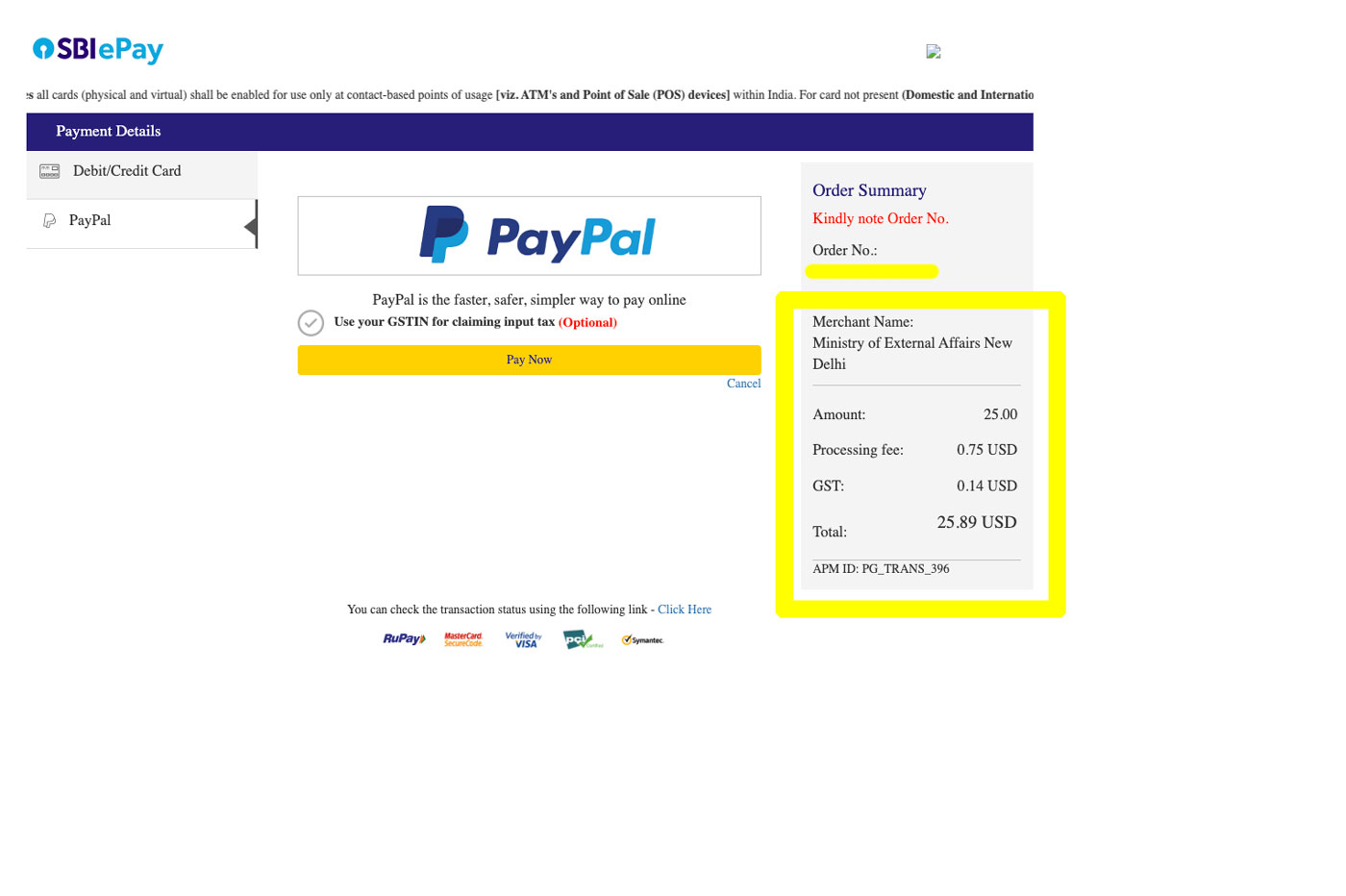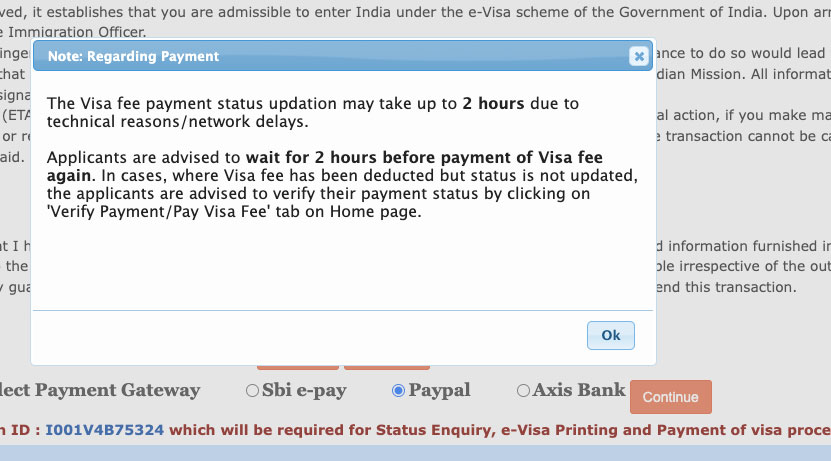 Die Aktualisierung des Status der Visa-Gebührenzahlung kann aus technischen Gründen/Netzverzögerungen bis zu 2 Stunden dauern. Wenn Sie eine Transaktion vornehmen, kann diese nicht abgeschlossen werden.