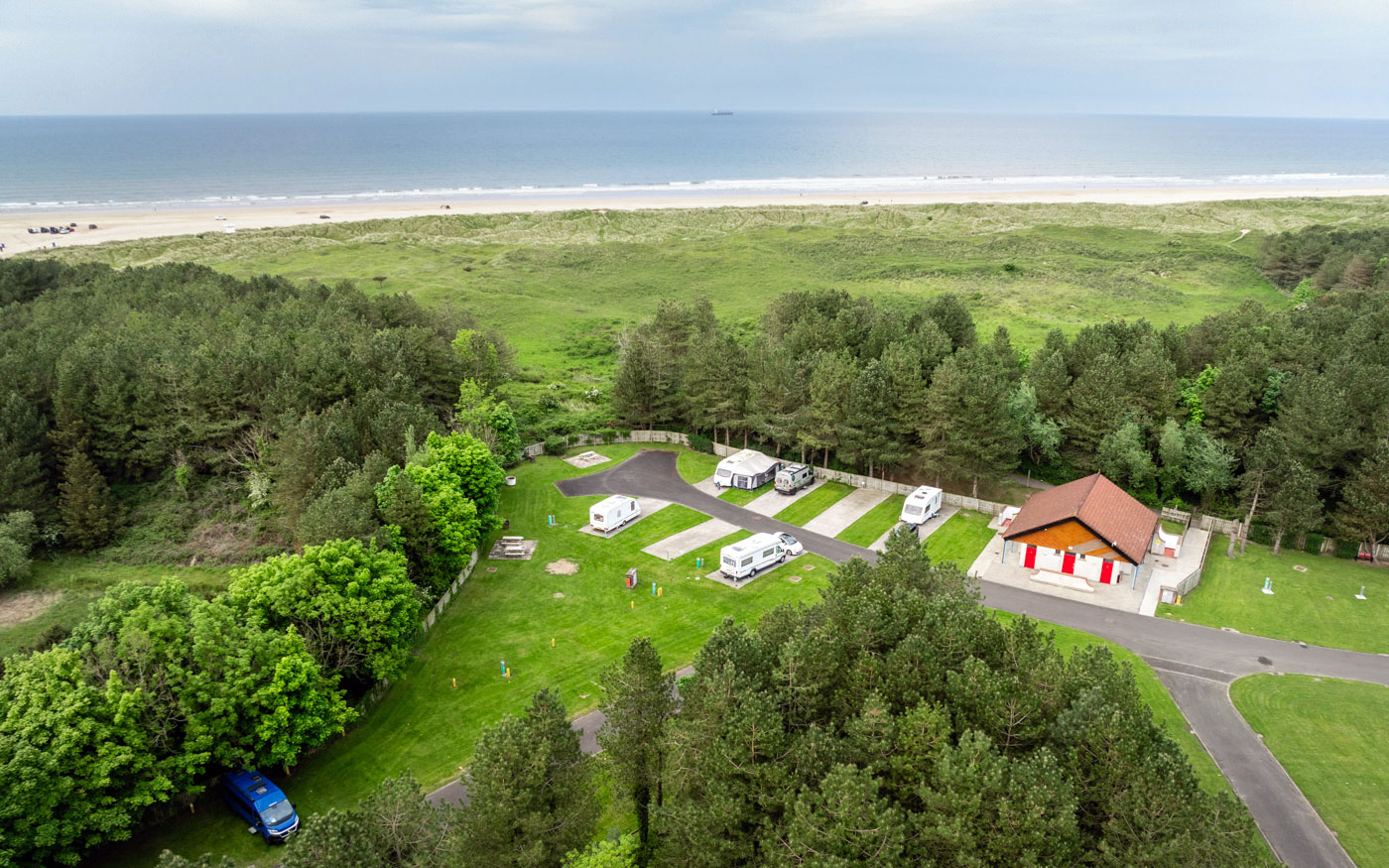 Es sind Duschen und Abspülmöglichkeiten vorhanden. Am dazugehörigen Café kannst du essen und natürlich auch Kaffee trinken. Die Lage am Meer ist ideal und die Nähe zu Belfast macht es perfekt.