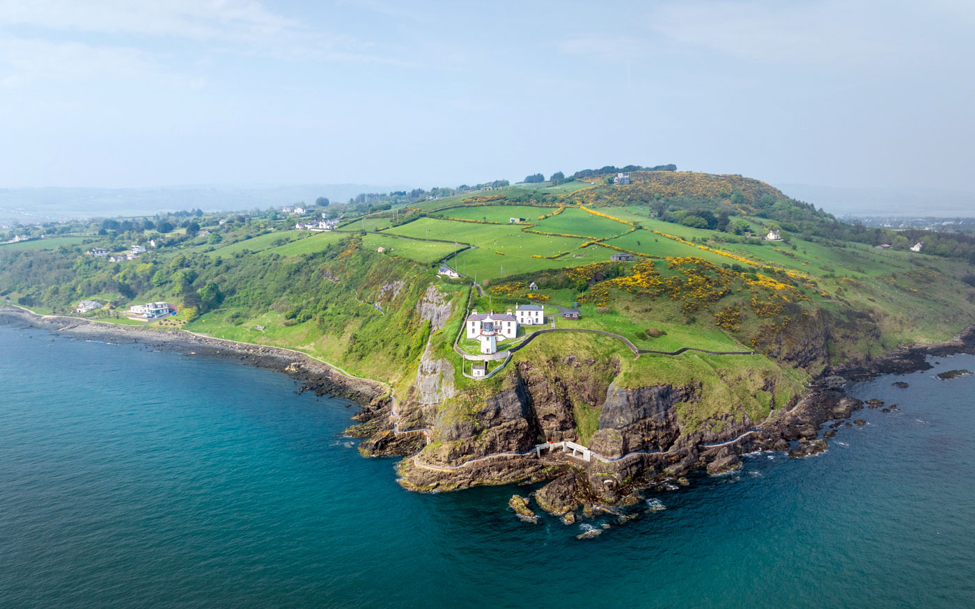 Der Pfad führt am Meer entlang und nach einer Weile bergauf zum Whitehead Leuchtturm. Von oben bieten sich dir spektakuläre Ausblicke auf die wunderschöne Küste Nordirlands.