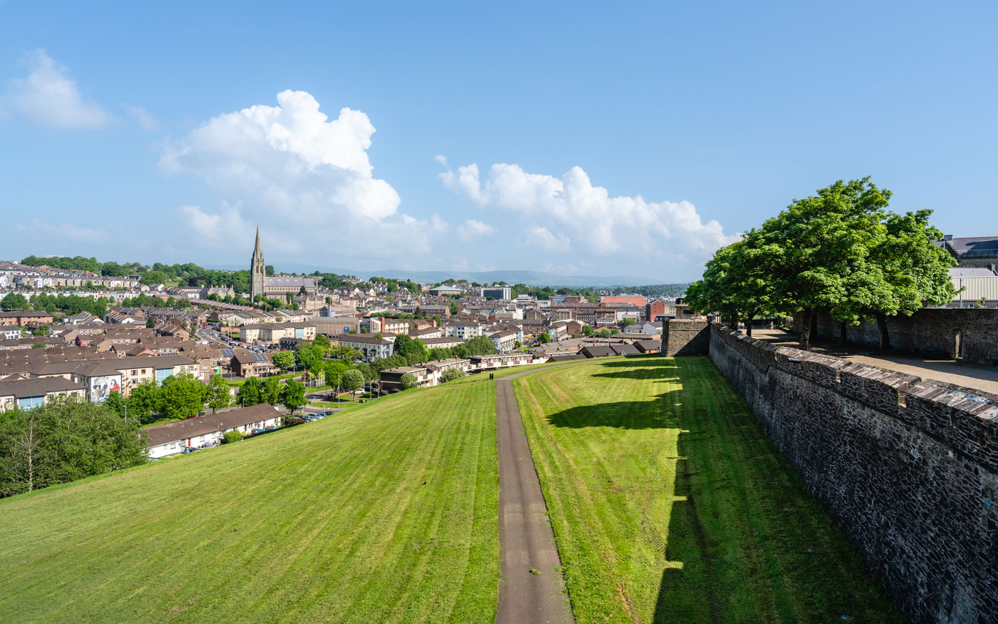 Das Stadtzentrum ist voller Geschäfte, gemütlicher Pubs und einer recht großen Gastronomieszene. Daher empfehlen wir dir, erstmal auf der Stadtmauer durch Derry-Londonderry zu spazieren.