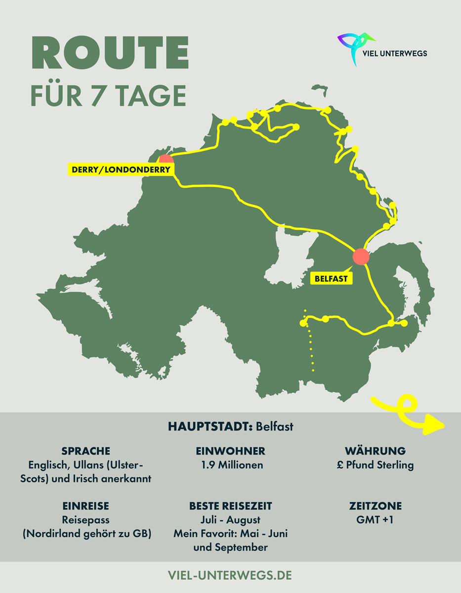 Hier findest du alles, was du zur Nordirland Rundreise wissen musst. Ich war eine Woche mit meinem eigenen Wohnmobil in Nordirland unterwegs.