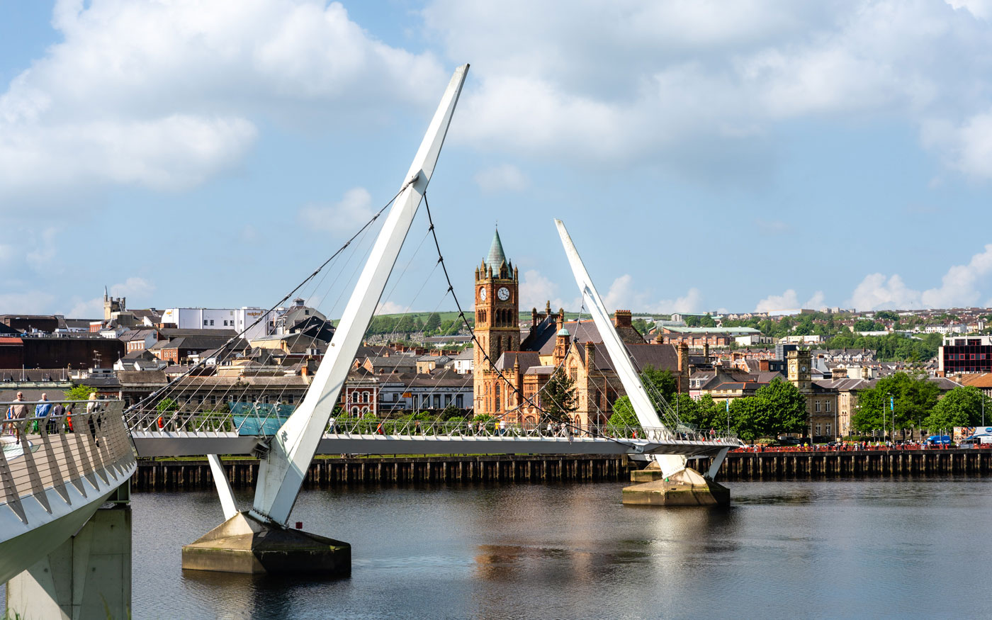 Spaziere über die Peace Bridge, um den schönsten Blick auf Derry-Londonderrys Zentrum zu erhalten.