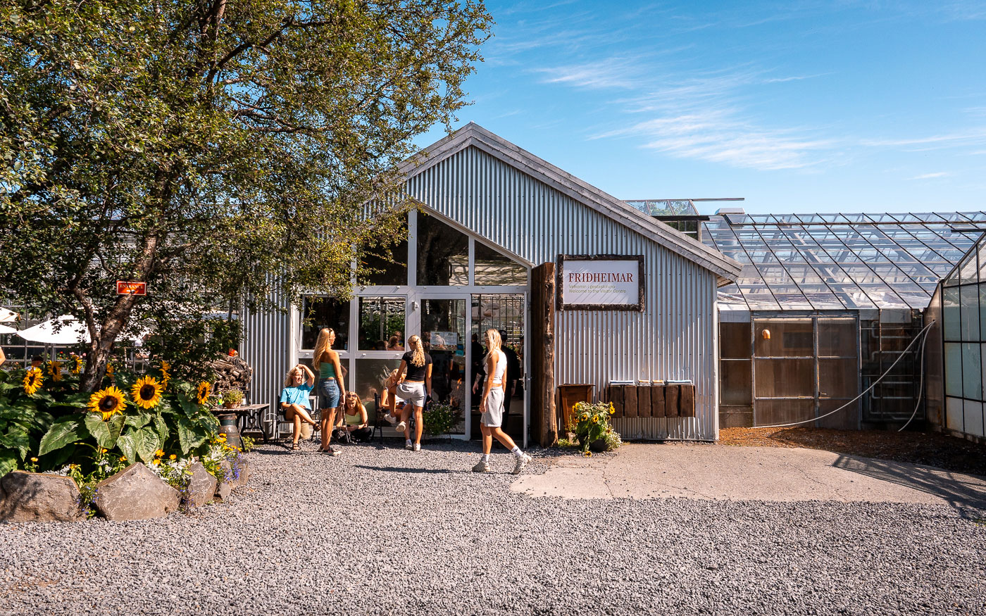 Fridheimar ist eine familiengeführte Tomatenfarm mit riesigem Gewächshaus. Hier kannst du einen Stopp einlegen. Allerdings ist es im Sommer am Mittag bei großen Touristengruppen ziemlich beliebt (und voll). Ohne Reservierung hatten wir keine Chance auf einen Platz. Es gibt nach farm-to-table Konzept Tomatengerichte, selbstgebackenes Brot, Suppen, Desserts und eben Drinks wie Healthy Mary, Virgin Mary oder Tomatenbier. Wir haben an der Bar einen Bloody Mary probiert.