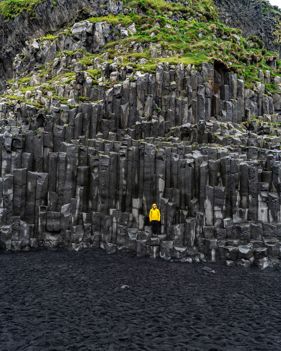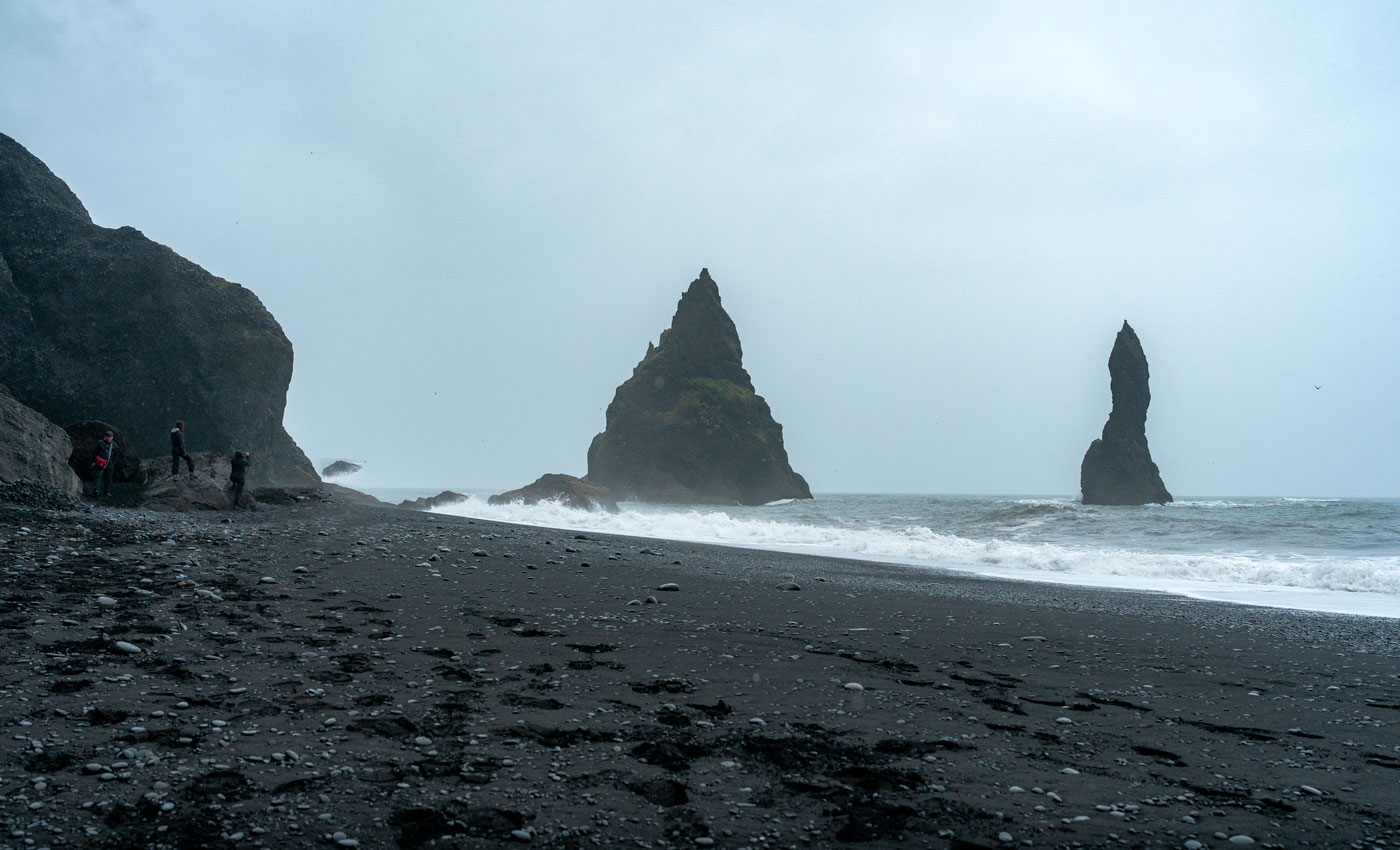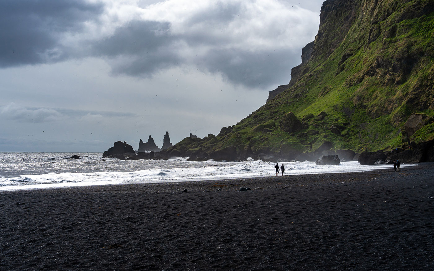 - Schwarzer Sandstrand von Reynisfjara (Süden) bei Vik: Dieser Strand ist bekannt für seinen schwarzen Sand, seine hohen Basaltsäulen und die rauen Wellen des Atlantiks. Im Sommer kannst du in den Felsen auch Papageientaucher über dir finden. (Achtung, die Brandung erwischt so manchen und zieht ihn hinaus aufs Meer)