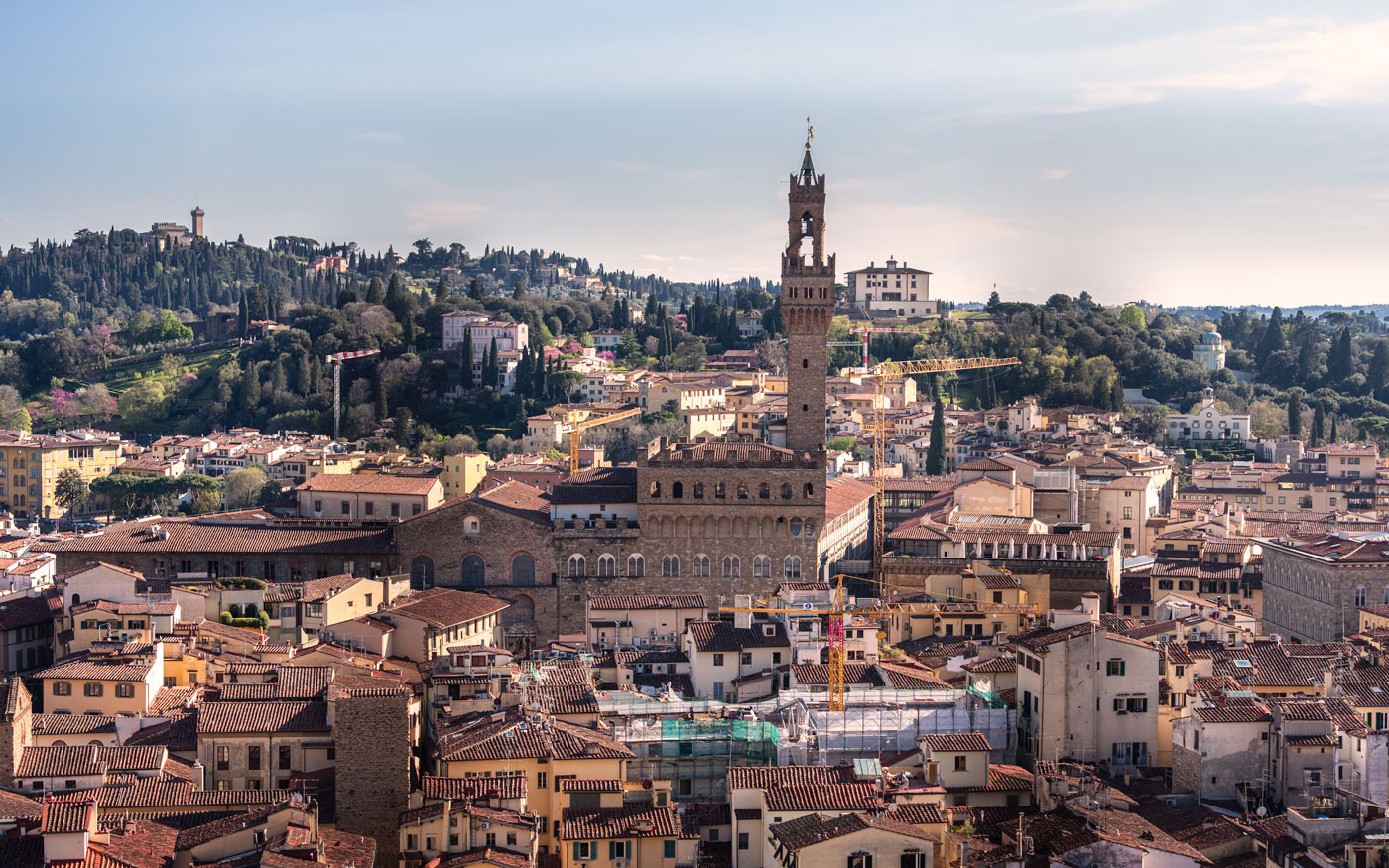 Eine nähere Aussicht auf den Dom hast du vom Rathausturm des Palazzo Vecchio. Da die Tickets sehr beliebt sind, musst du dich allerdings rechtzeitig um die Reservierung kümmern. Bei Regenwetter ist der Aufstieg aus Sicherheitsgründen jedoch nicht möglich. Ebenso ist der Zutritt für Kinder unter sechs Jahren aus Sicherheitsgründen untersagt (in Begleitung eines Erwachsenen möglich).