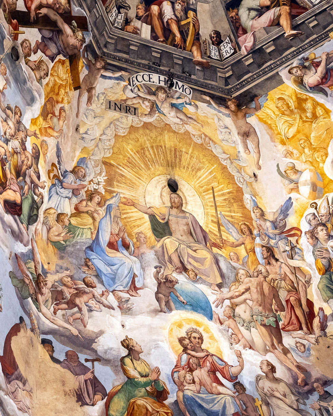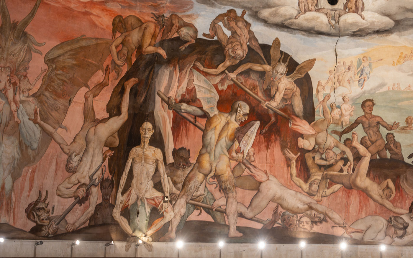 Das Bild gilt als weltweit größtes christliches Fresko. Auf fast 4000 Quadratmetern nimmt Vasari das Thema aus dem Baptisterium, das "Jüngste Gericht" auf.