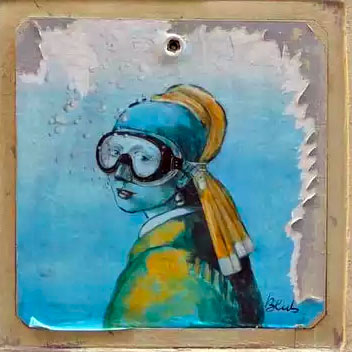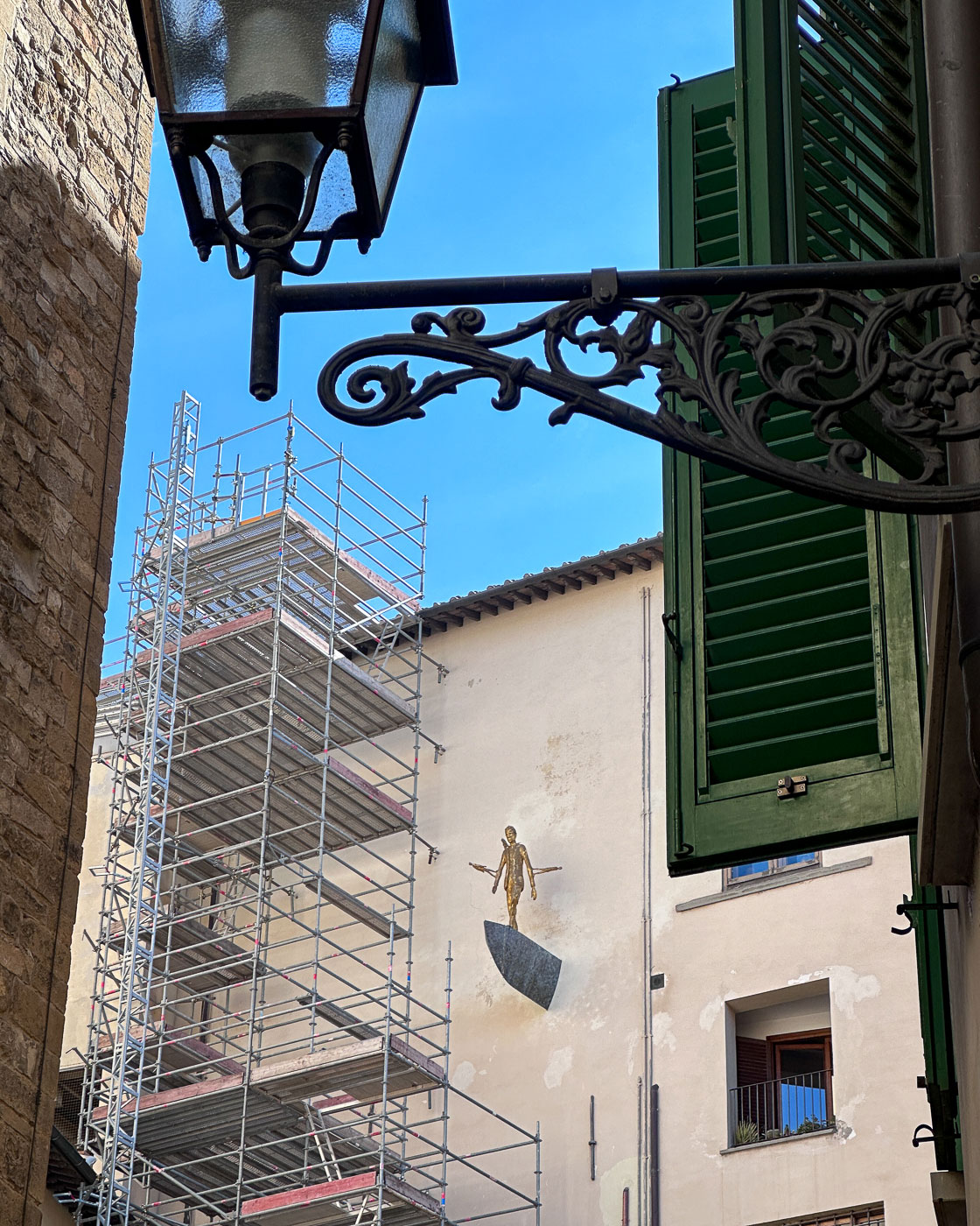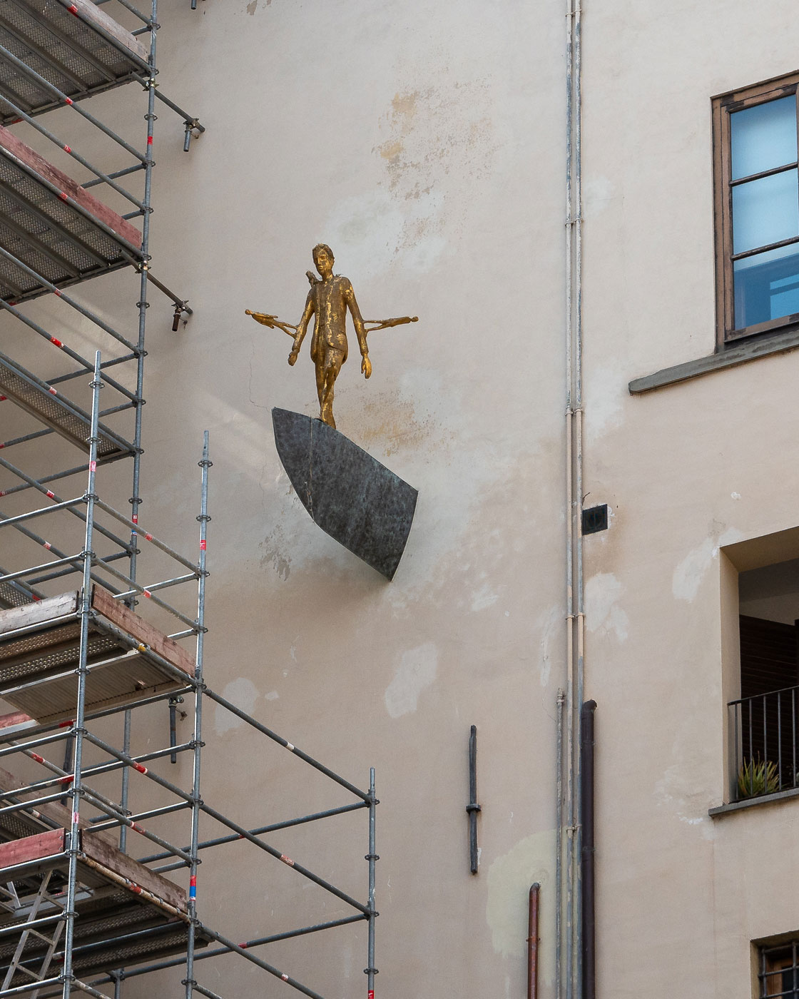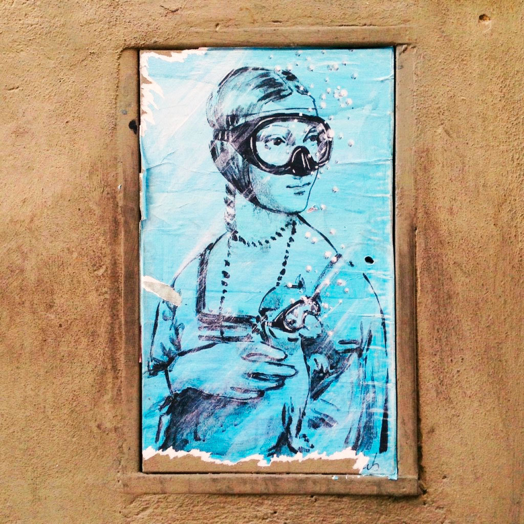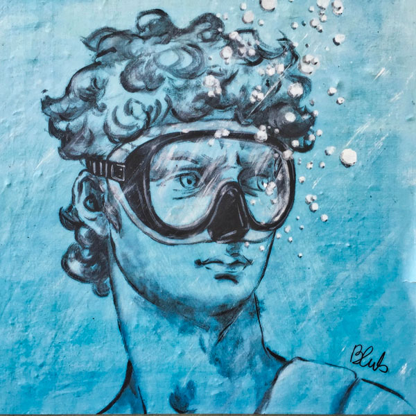 Ein weiterer Künstler ist Blub, der klassische Kunstwerke in Taucheranzügen darstellt. Auch seine Kunstwerke begegnen dir in ganz Florenz.