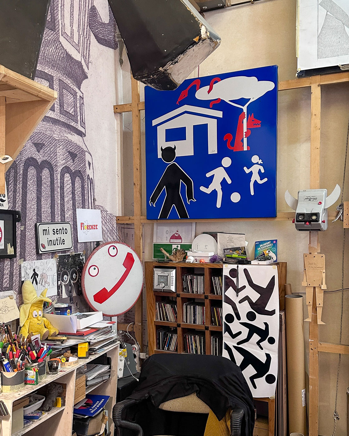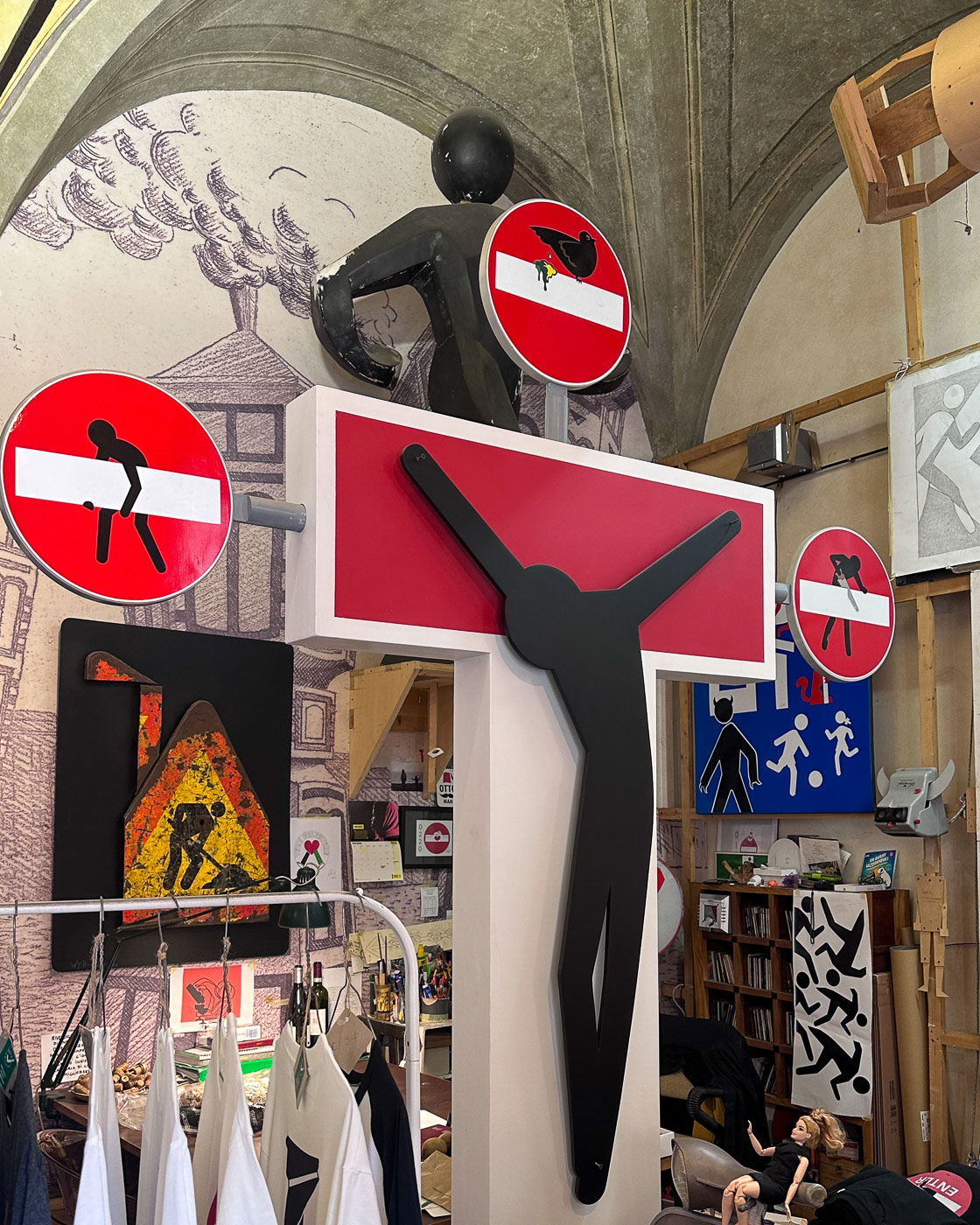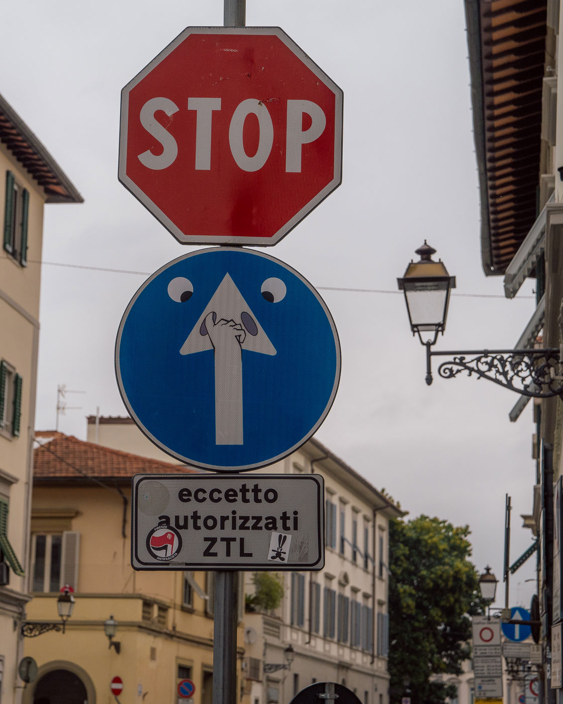 Der bekannteste Streetart-Künstler in Florenz ist Clet Abraham, bekannt für seine humorvolle Verschönerung von Straßenschildern. Der französische Maler und Bildhauer kurz nur CLET hat eine schöne Art gefunden, dir immer wieder ein Schmunzeln ins Gesicht zu zaubern. Eigentlich nicht legal, aber dank wachsender Beliebtheit geduldet. Er darf sich nur nicht auf frischer Tat ertappen lassen.