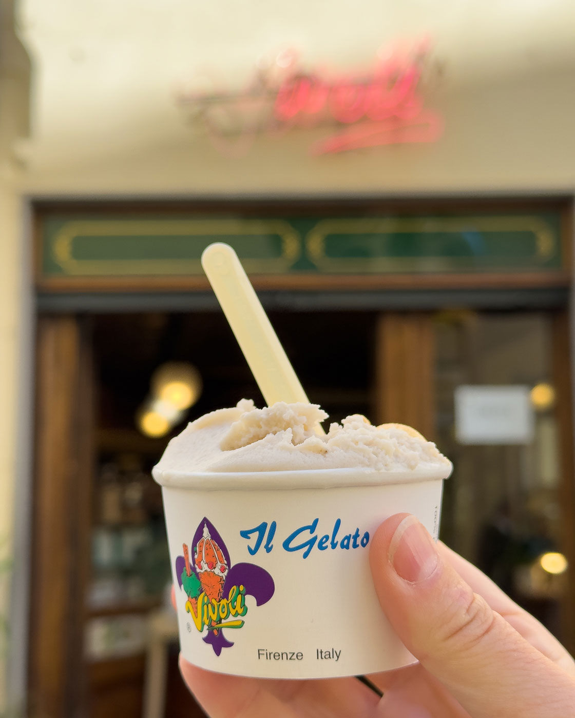 Viele Guides über Florenz besagen, dass du die Eisdiele Vivoli unbedingt besuchen musst. Sie hätten das beste Eis in Florenz. Das Eis war eine Enttäuschung und viel zu teuer. Gutes Eis in Italien erkennst du daran, dass die Behälter abgedeckt sind, damit die perfekte Temperatur gehalten wird.