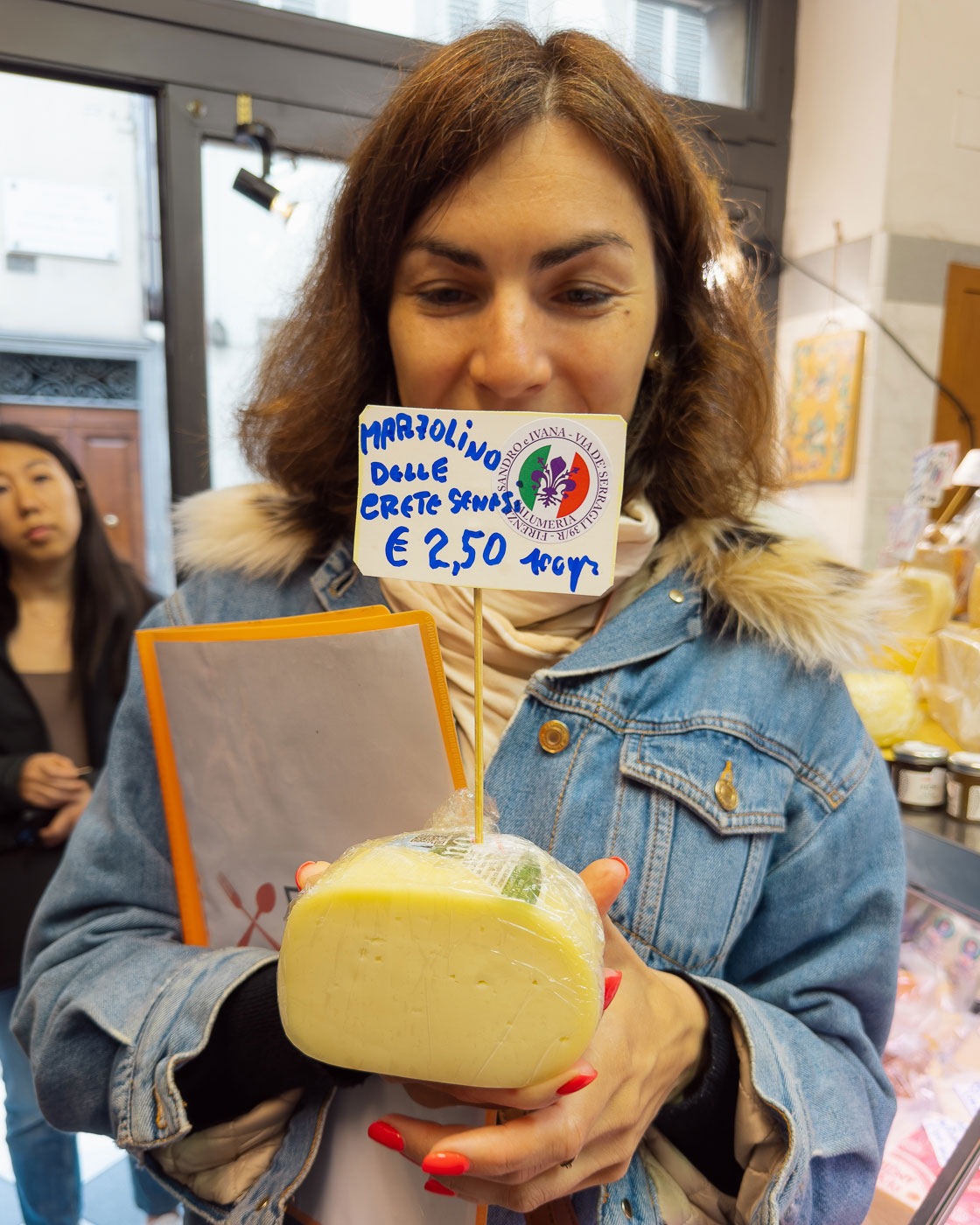 Natürlich mit Verkostung traditioneller toskanischer Gerichte und Wein aus einer historischen Fiaschetteria. Wir haben ein Feinkostgeschäft für toskanischen Käse und Wurst besucht und hausgemachtes Gelato verkostet. Alles in Läden, die seit Generationen von Einheimischen betrieben werden.
