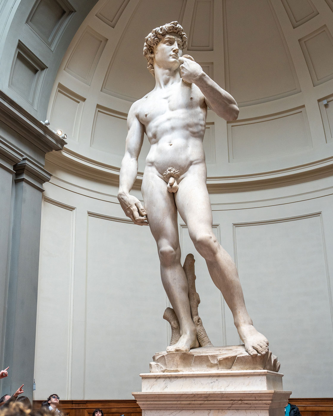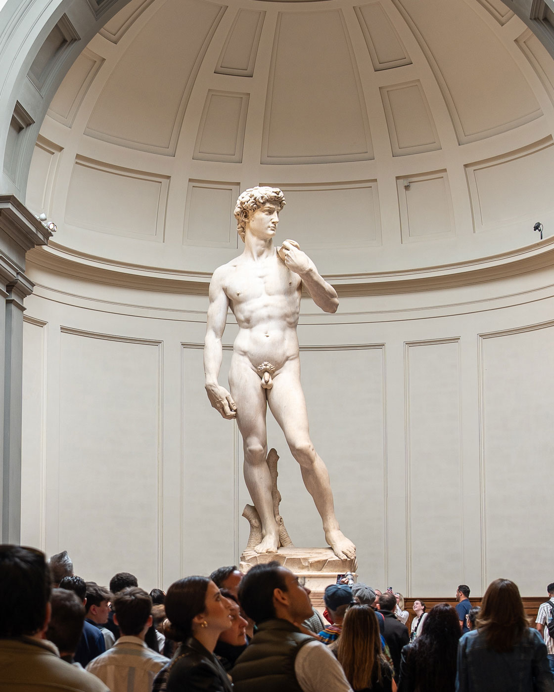 Als Kunstliebhaberin ist es faszinierend, wie detailreich Michelangelos David ist. Was viele nicht wissen: Er ist aus einem einzigen Marmorblock gehauen und die Proportionen sind ziemlich genau. Wirklich der Wahnsinn. Ich war sehr begeistert und habe die Details von allen Seiten genau betrachtet.