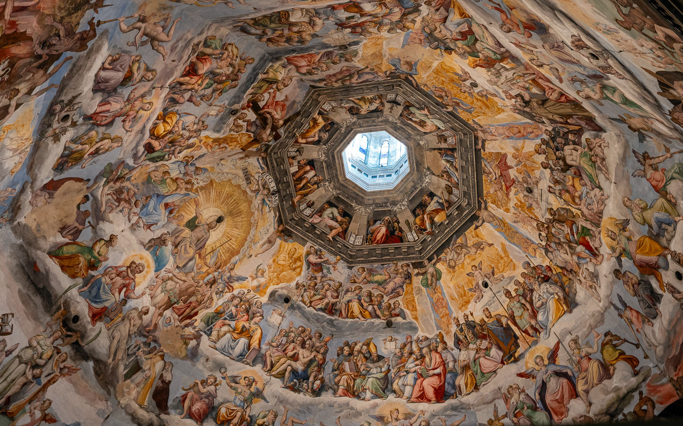 Besuche den Piazza del Duomo und das Innere des Doms, des Baptisterium und den Campanile am frühen Morgen und kehre am Abend zurück, um dann die Kuppel zu besteigen, Details der Bemalung aus der Nähe zu betrachten und den Panoramablick zum Sonnenuntergang zu genießen.