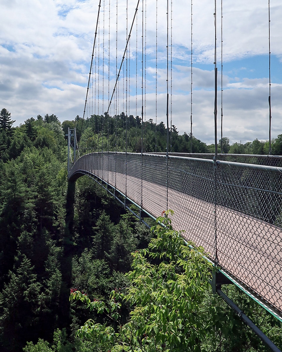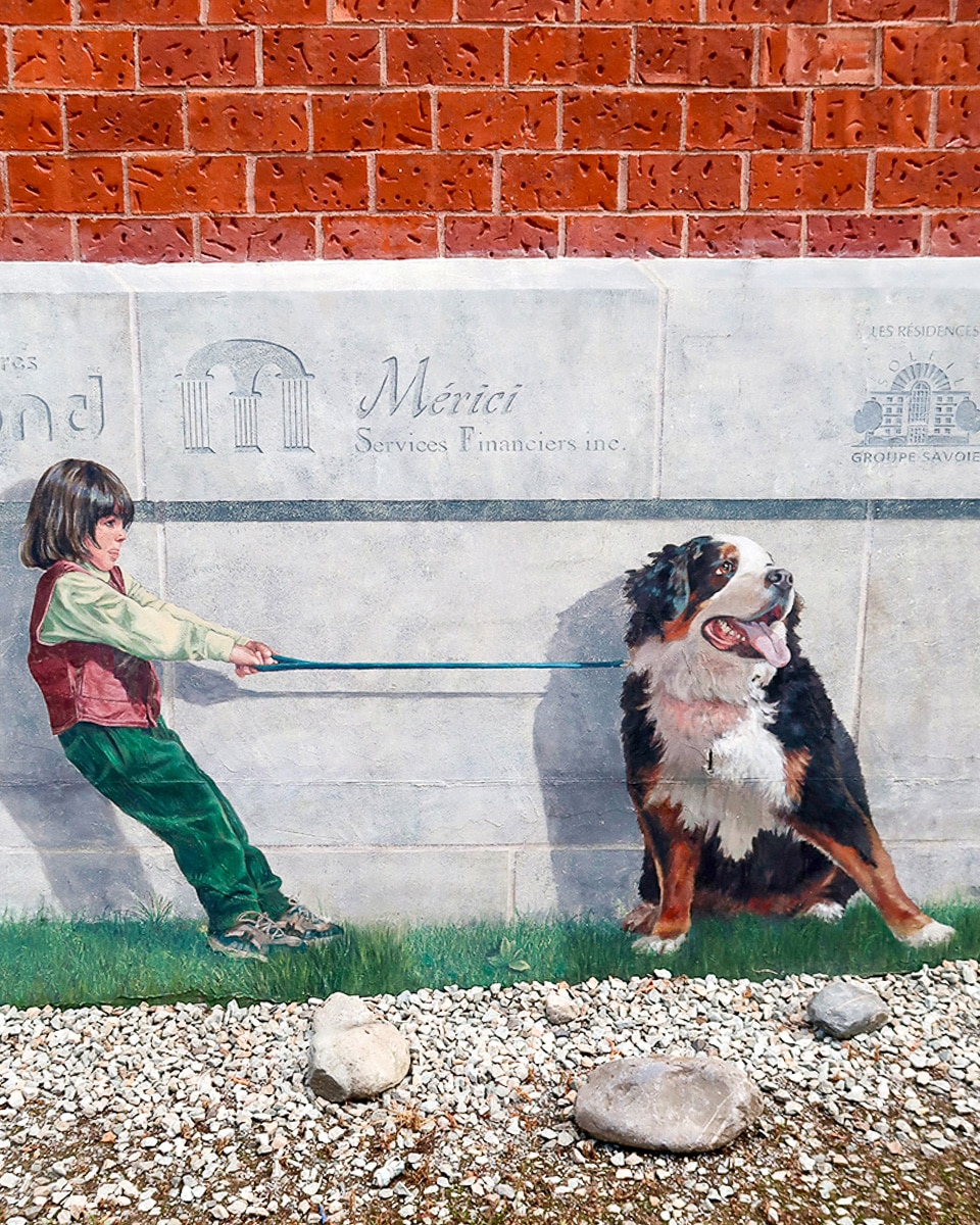 Von dort sind es weitere 1,5 Stunden nach Coaticook, wo ich eine Schlucht mit Hängebrücke entdecke. Anschließend bin ich nach Sherbrooke gefahren (ca. 40 Minuten), wo ich dir ganz klar den „Murals Circuit“ ans Herz legen möchte.