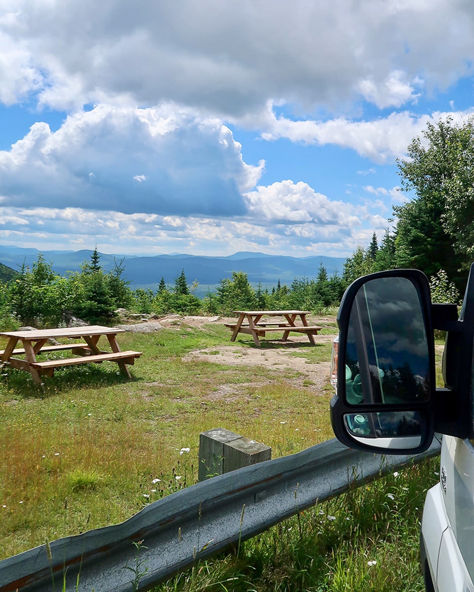 Von Sherbrooke halte ich mich 60 km östlich und fahre nach La Patrie, einem winzigen Dorf ohne Handynetz. Hier beginnt die 193 km lange Panoramastrecke „Route des Sommets“, was man am ehesten als die „Gipfeltour“ übersetzen könnte. Der Endpunkt des Roadtrips befindet sich in St-Adrien. Dazwischen liegen 15 verschiedene Gipfel, etliche Aussichtspunkte und der hübsche See Lac Mégantic. Idealerweise unternimmst du diesen Roadtrip im Herbst, denn dann zaubern die Farben der Wälder die Landschaft abermals schöner.