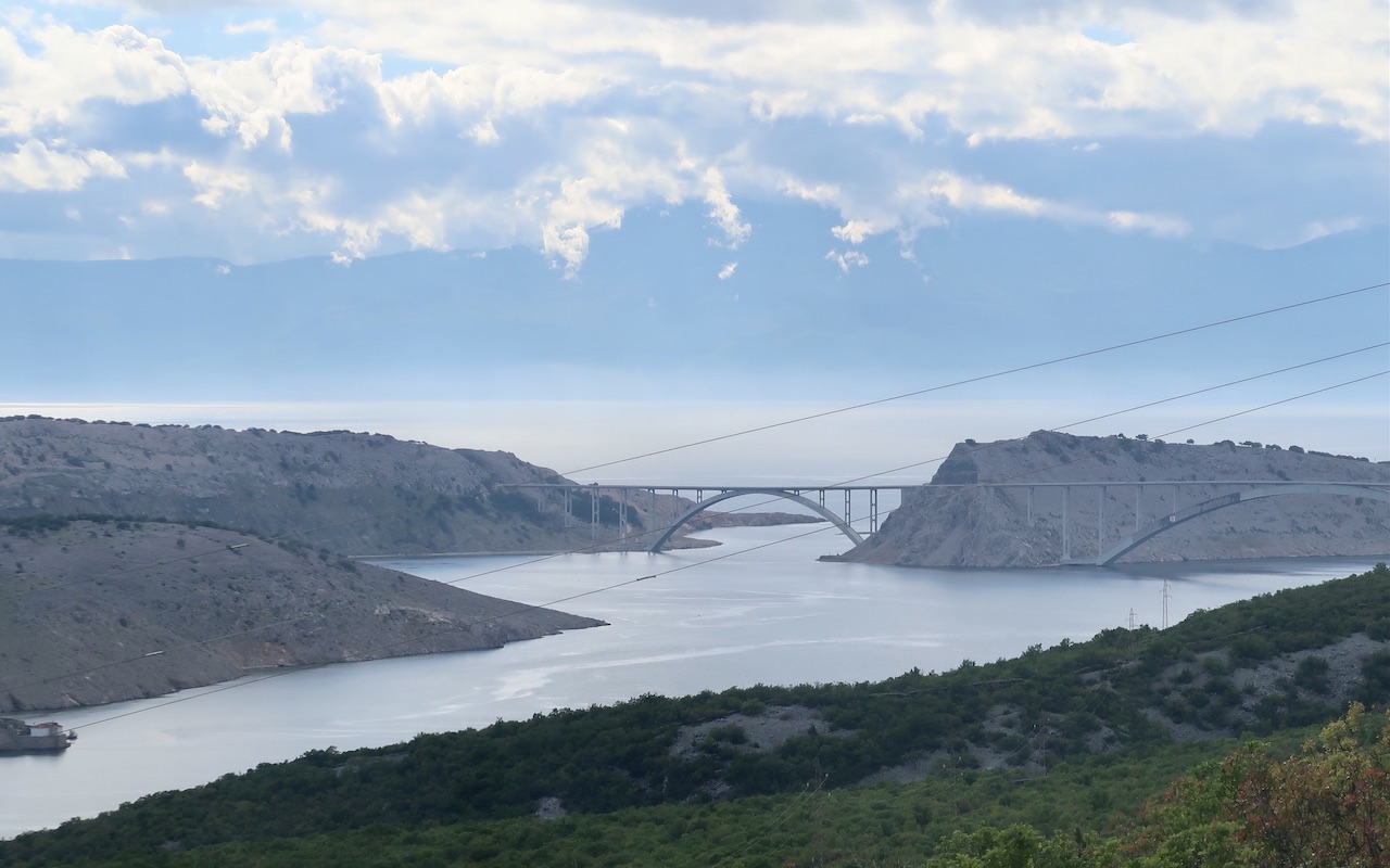 Von Bled sind es noch reichliche 2,5 Stunden bis zum ersten Ziel auf kroatischem Boden: die Insel Krk. Der Moment, in dem das erste Mal das Mittelmeer vor einem auftaucht, ist jedes Mal etwas ganz Besonderes. Gleich darauf kommt auch die berühmte Krk-Brücke mit seinen zwei markanten Stahlbögen ins Sichtfeld. Lange Zeit war die 1450m lange Brücke die am weitesten gespannte Stahlbetonbogen-Brücke der Welt - 1996 musste sie diesen Rang jedoch an eine Brücke in China abtreten.