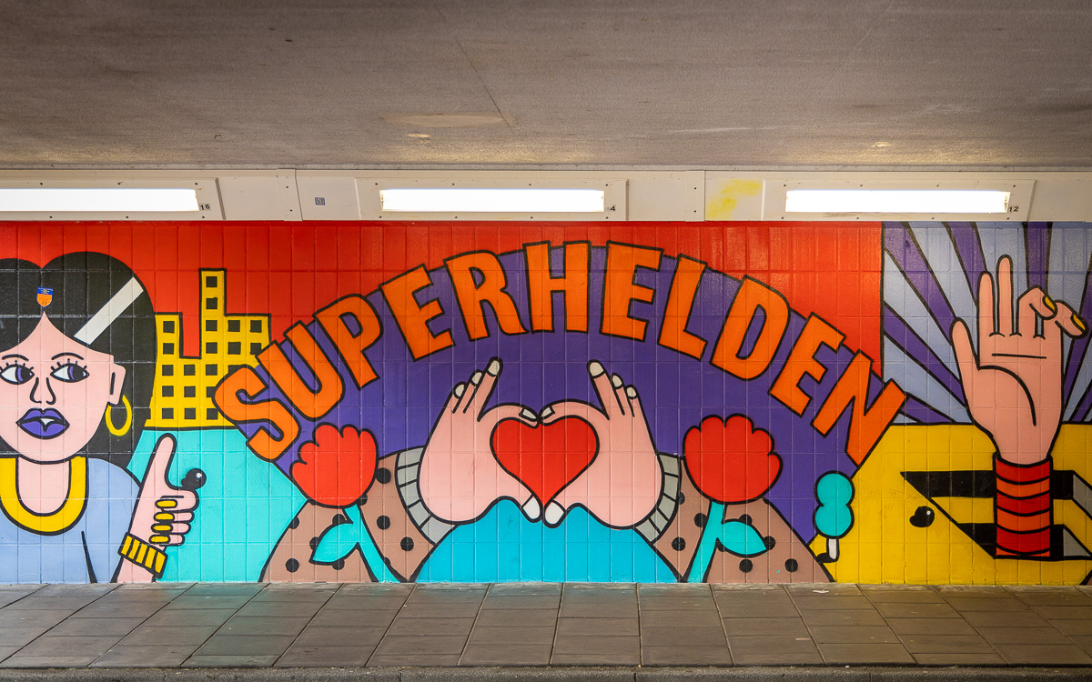 Wir lieben Street Art, du auch? Dann bist du in Eindhoven genau richtig. Die Szene ist hier sehr lebhaft, es entstehen täglich neue Kunstwerke. Vor allem am Strijp-S und De Berenkuil findest du große Wandbilder. Vor allem letzterer ist unfassbar, denn der Komplex aus Fußwegen und Fahrradtunneln unter dem Kreisverkehr Insulindeplein ist überall bunt.