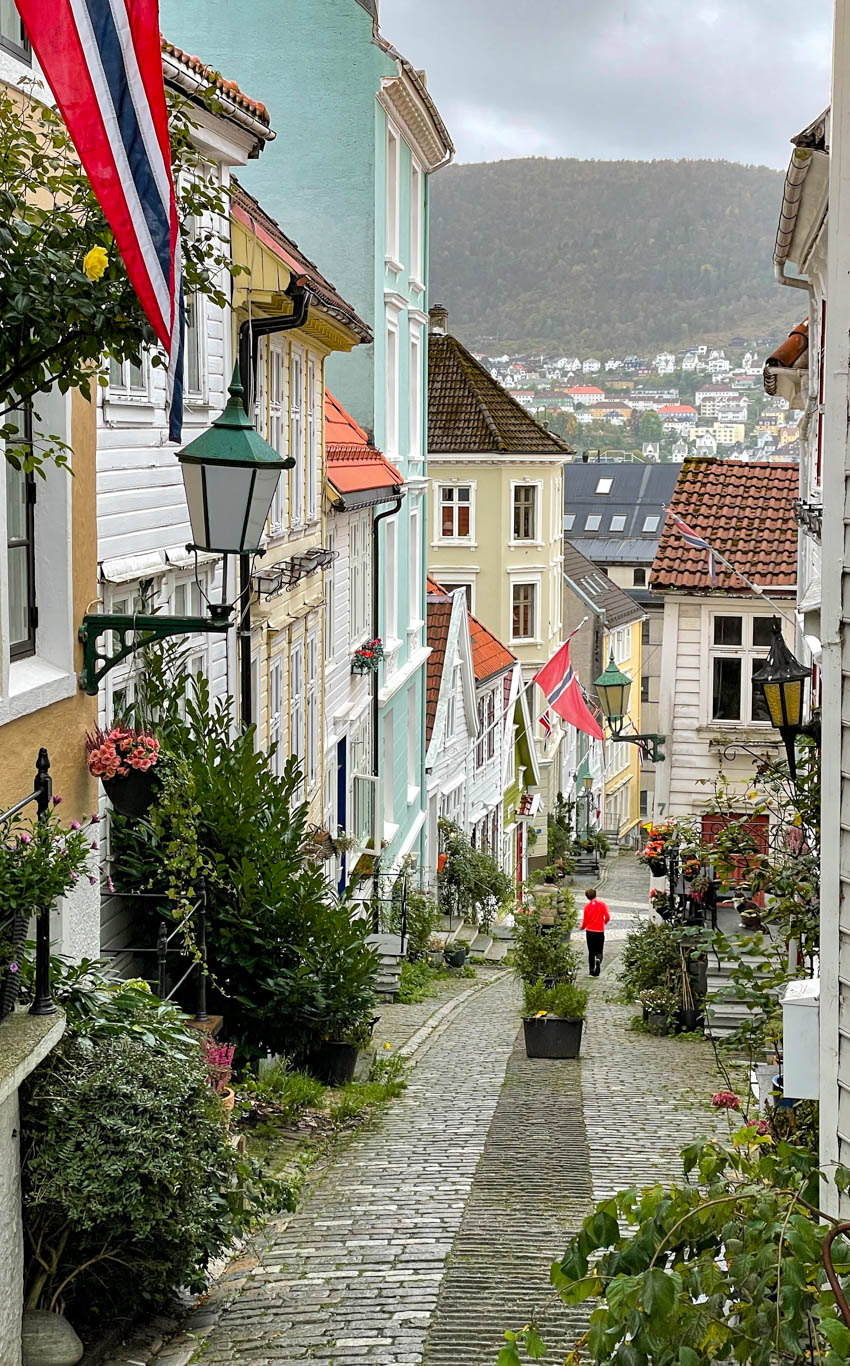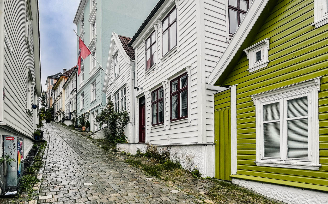 Lässt du den Hafen hinter dir, gelangst du automatisch in die Altstadt von Bergen. Mit ihren weißen Holzhäusern in den steilen und engen Gassen schmiegen diese sich malerisch gelegen aneinander. Hier würde vermutlich jeder gerne wohnen. Eine der beliebtesten Sehenswürdigkeiten bei Besuchern und für mich ein Hauch von San Francisco (auch, weil manche Gassen sehr steil sind). Schlendere durch die Altstadt, entdecke kleine Cafés und suche das schönste Holzhaus.