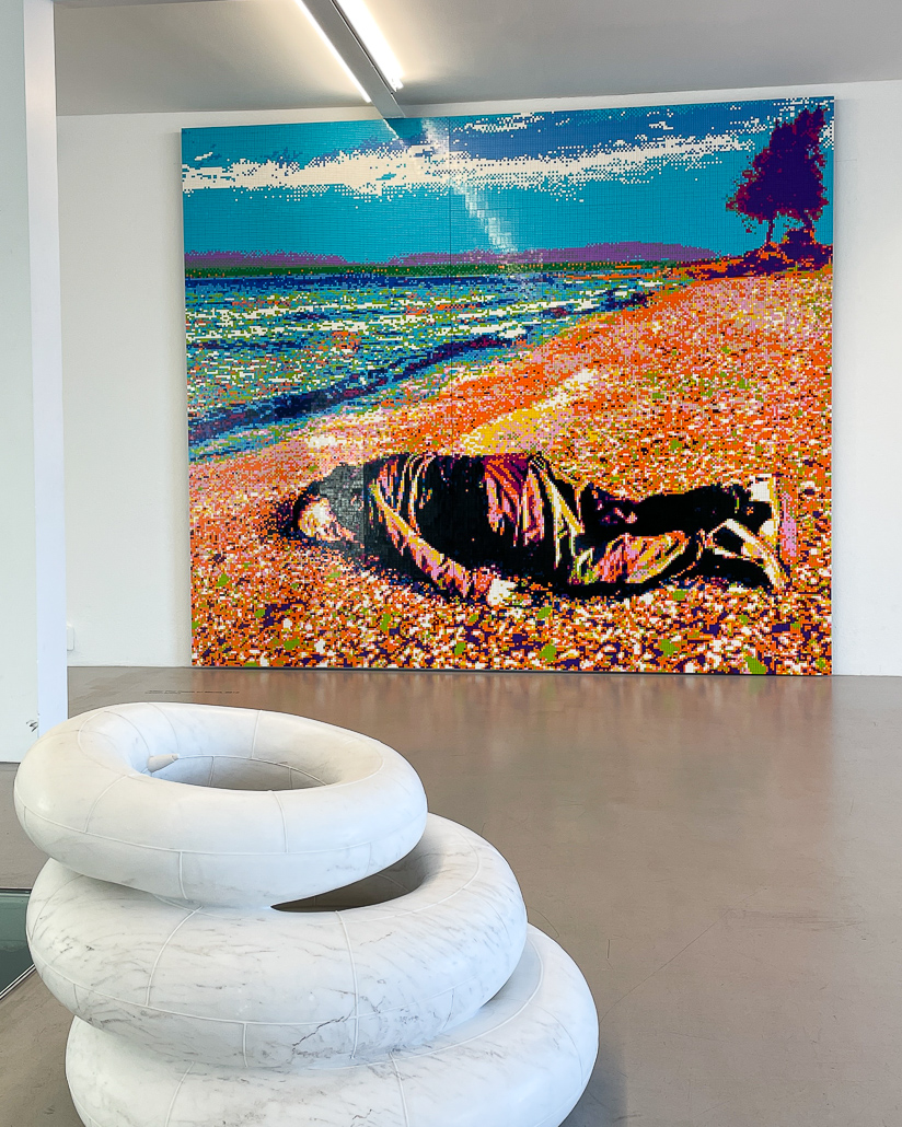 Theoretisch könntest du jetzt weiter zur nächsten Insel fahren: Insel Vestvågoy. Da ich Wäsche waschen muss und einen Campingplatz ausgeguckt habe, fahre ich zurück nach Henningsvaer. Zuerst besuche ich die Henningsvær Trevarefabrikken für ein grandios köstliches Essen, dann besuche ich die KaviaFactory, wo aktuell eine sehenswerte Ausstellung von Au Weiwei ist. Norweger kennen den chinesischen Künstler wohl nicht. Als ich sage, dass ich aus Deutschland komme, bekomme ich keine Einleitung. Die Ausstellung beinhaltet Werke seiner Lego Serie, Videokunst und das Highlight: die Navigation Route der Sea Watch 3 Route mit Flüchtlingen. Dargestellt natürlich in Lego Steinen. aus dem Jahr 2019. Einfach sehenswert und überraschend, solch eine tolle Galerie auf den Lofoten zu finden.