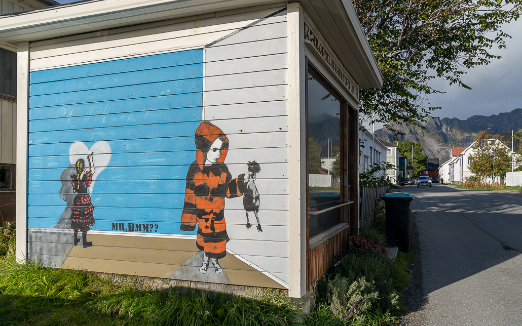 - Tag 5: Torvdalshalsen Rastplatz - Børvag (Street Art, vieles nicht mehr da) - Wikingermuseum Borg - Fischerdorf Eggum - kurze Wanderung Skulputur Head. Übernachtung: FURU Hostel (bei Freunden)