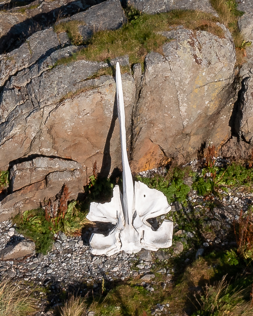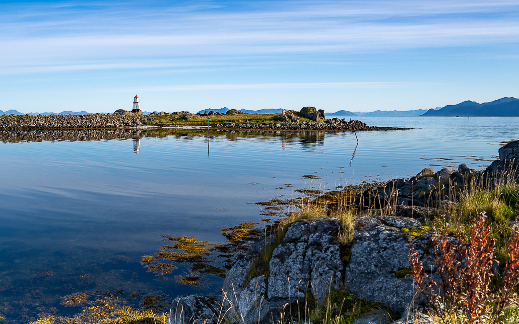 Hier lohnt sich der kurze Spaziergang zum Leuchtturm, denn am Fuße davon liegen noch die Reste eines Wal-Skeletts. Zugegeben werden die Knochen Jahr für Jahr weniger, aber ich finde es trotzdem sehenswert. Auf dem Rückweg komme ich mit einem älteren Herr ins Gespräch. Mit Händen und Füßen (er spricht kein Englisch, ich kein Norwegisch) tauschen wir die wichtigsten Dinge über Land und Wetter sowie meine Reise aus.