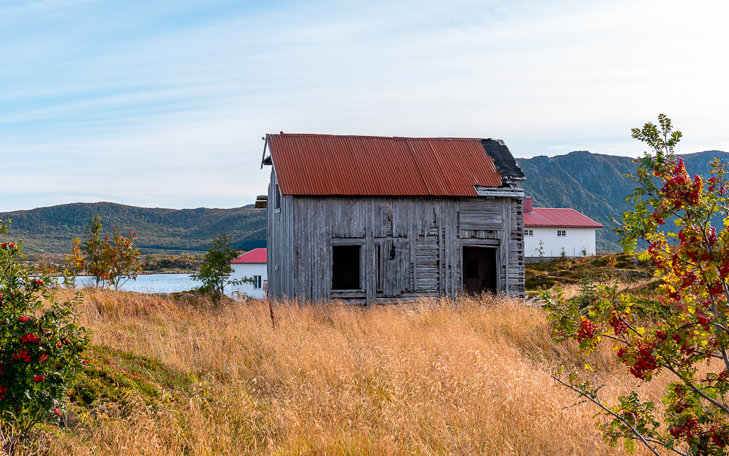 Auf Empfehlung bin ich die Abzweigung nach Borgvåg gefahren. Lost Places ziehen mich an. Die Strecke ist toll, die Straße nicht asphaltiert und mit Schlaglöchern übersät. Das kleine Fischerdorf liegt sehr abgeschieden und die alten Holzhäuser, die mir als Lost Places angekündigt wurden, stehen entweder nicht mehr oder sind nicht mehr wirklich als Lost Place zu führen. Eher Scheunen, die verfallen und stark einsturzgefährdet sind. Den Umweg kannst du dir eigentlich sparen.