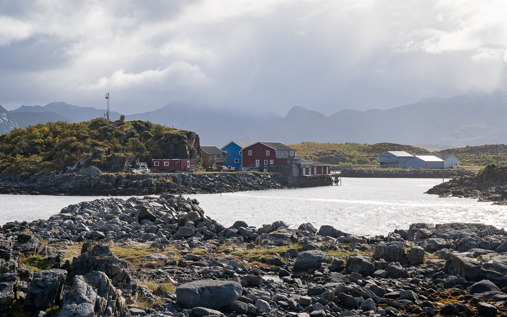 Diese Insel ist besonders geprägt von der felsigen Landschaft. Die Berge erheben sich steil aus dem Wasser und die bewohnten Flächen sind rar. Das Wetter wird schlechter, daher fällt ein Ausflug mit der Fähre samt Wanderung zum Bunesstranda im einzigen Nationalpark der Lofoten (Lofotodden-Nationalpark) aus.