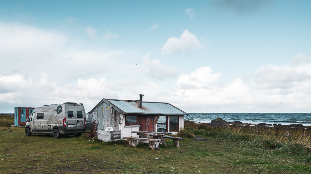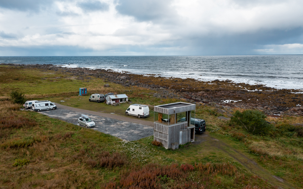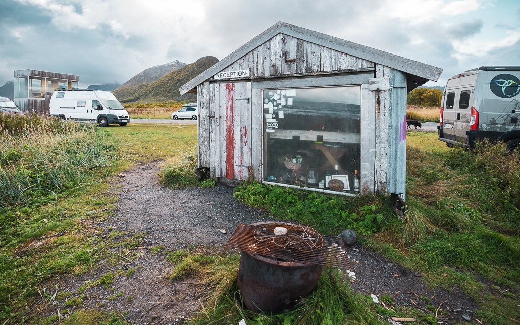 - Kostenloser Stellplatz für Camper: Rolfs Bar (oder einfach Grunnfør Bicycle Shelter bei Google Maps eingeben). Die letzten Meter sind mit Schlaglöchern übersät. Nach viel Regen außerdem sehr matschig. Aber alles super befahrbar, nur eben langsam.