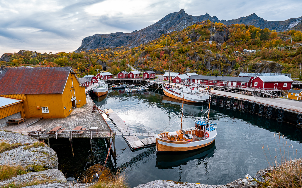 Der Ort selbst besteht zum größten Teil aus dem norwegischen Fischereimuseum. Im Herbst leider geschlossen. Außerdem gibt es hier in der Bäckerei auch die besten Zimtschnecken der Lofoten. ABER: Nur im Sommer. Im Herbst gibt es hier nur ein Café auf der Rückseie des Museum. Außer Waffeln und schlechtem Filterkaffee war hier leider nichts zu bekommen.