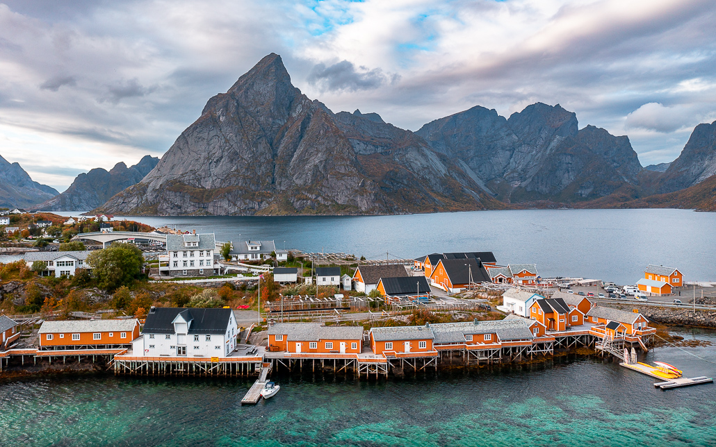 Nachdem du der E10 ein paar Kilometer gefolgt bist und dabei zwei Tunnel passiert hast, folgt das kleine Fischerfort Hamnøy am Reinefjord. Das Motiv von der Brücke gesehen auf die roten Rorbuer Fischerhütten samt dem markanten Berg Festhæltinden, der sich dahinter erhebt, zählt zu den bekanntesten Fotomotiven der Lofoten.