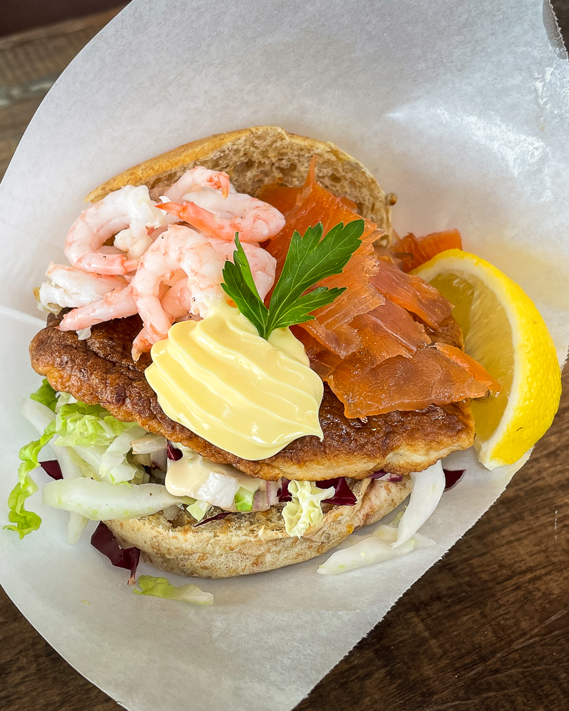 Sakrisøy ist gleich für zwei Dinge bekannt: Die Holzhäuser, die hier gelb statt rot sind und Anitas Sjømat die, die besten Fischburger (Tipp: Ole Brumm Fischburger) weit und breit serviert. Neben der Theke kannst du hier Souvenirs oder Spezialitäten wie Lachs, Salz, oder getrockneten Fisch einkaufen. Da ich mit Camper unterwegs war, ideal, um den daheim gebliebenen Lachs und Salz aus den Lofoten mitzubringen.