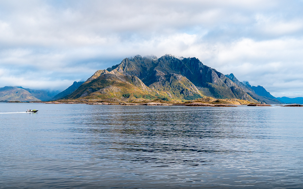 Die Fahrt beginnt im Hafen von Svolvær und ist – ohne zu übertreiben – atemberaubend schön. Über uns ziehen Seeadler ihre Runden, an Land erkennen wir Robben. Bei viel Glück triffst du hier sogar auf Orcas. Da ich diese erst in Andenes in großer Zahl sehen konnte, für mich weniger schlimm, heute auf keine dieser faszinierenden Tiere zu treffen. Lediglich die anderen Ausflügler in Zodiac-Schnellbooten stören die Ruhe in der Natur.