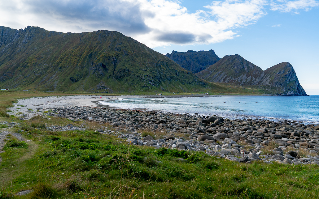- Tag 6: Sand - Unstad (Surfer und Café) - Wanderung Smørdalskammen - Lesknes. Übernachtung: Haukland Beach